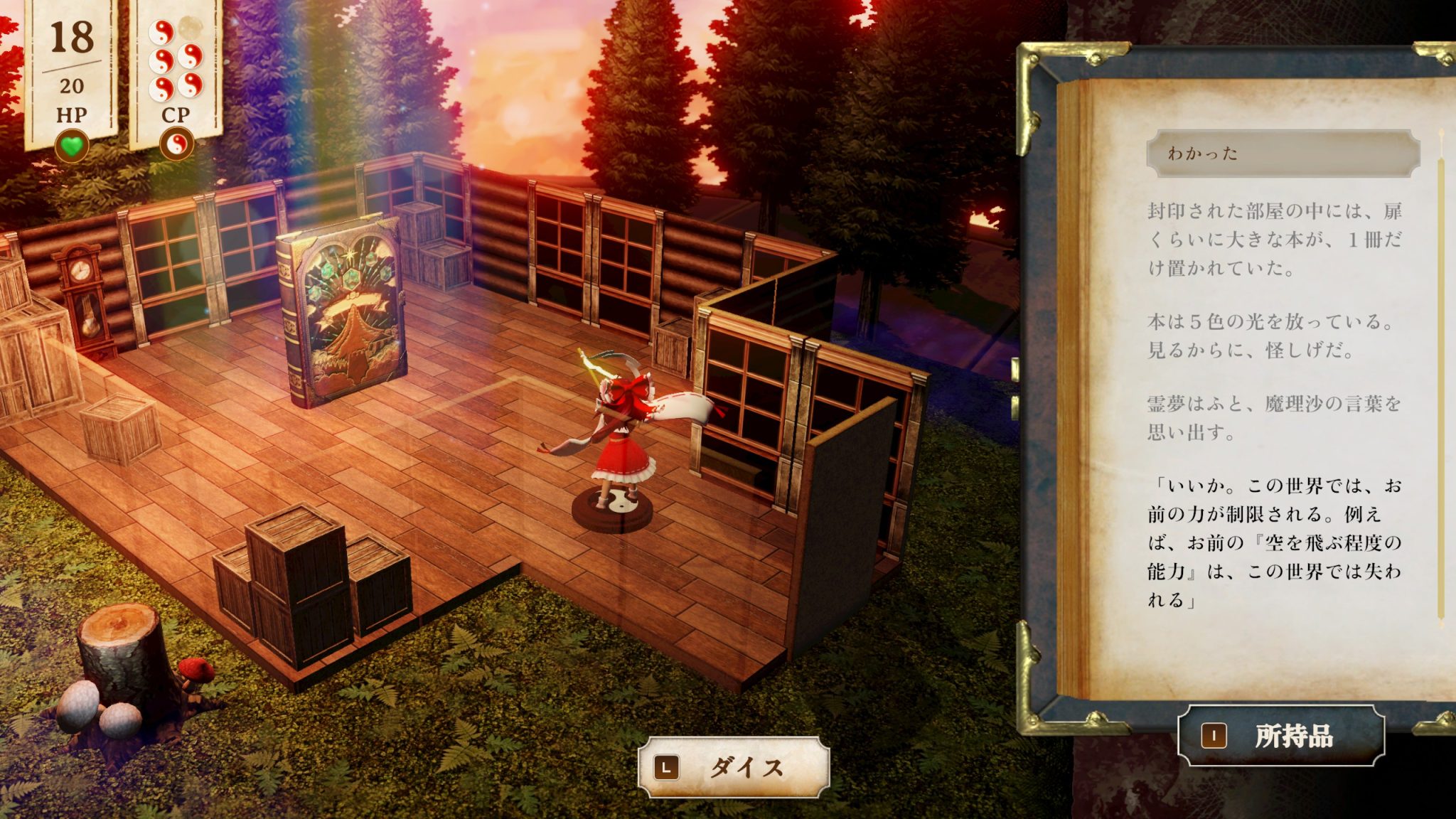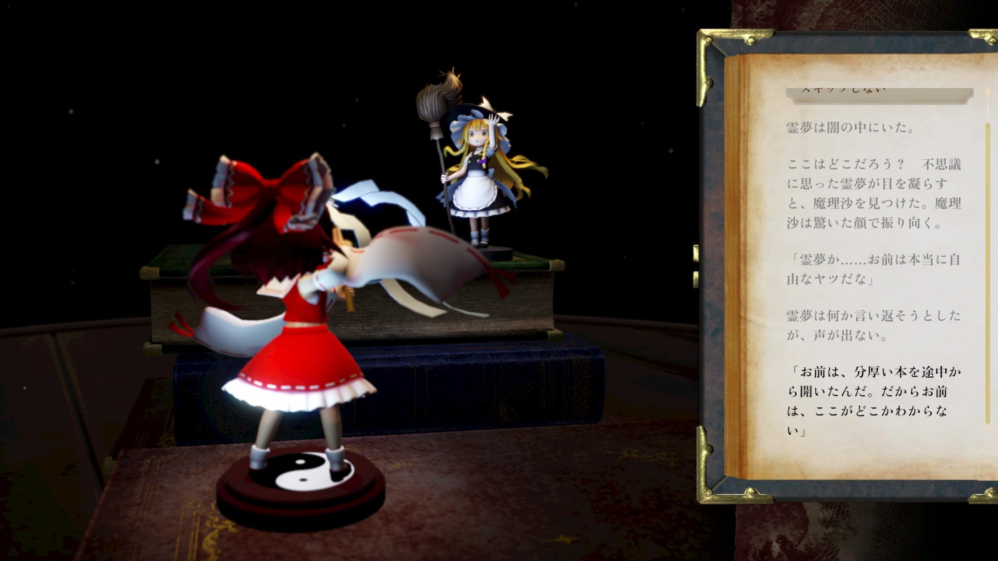 本作的故事共計將分為 5 章。在體驗版中,玩家將能遊玩第 1 章中間部分為止的內容。即靈夢迷失在書中世界裡,在不可思議的圖書館中尋找魔理沙的蹤跡。