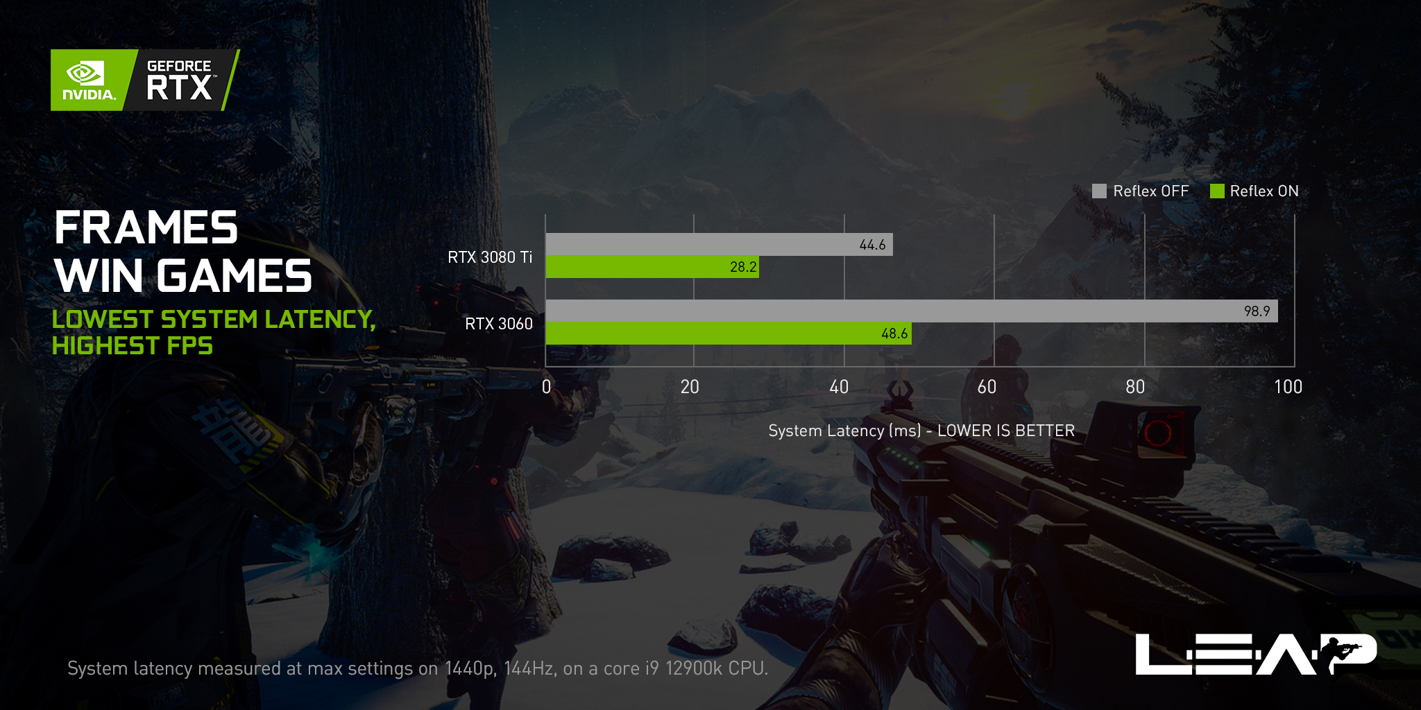 •《LEAP》可獲得高達 50% 的延遲降低,同時支援 DLSS。