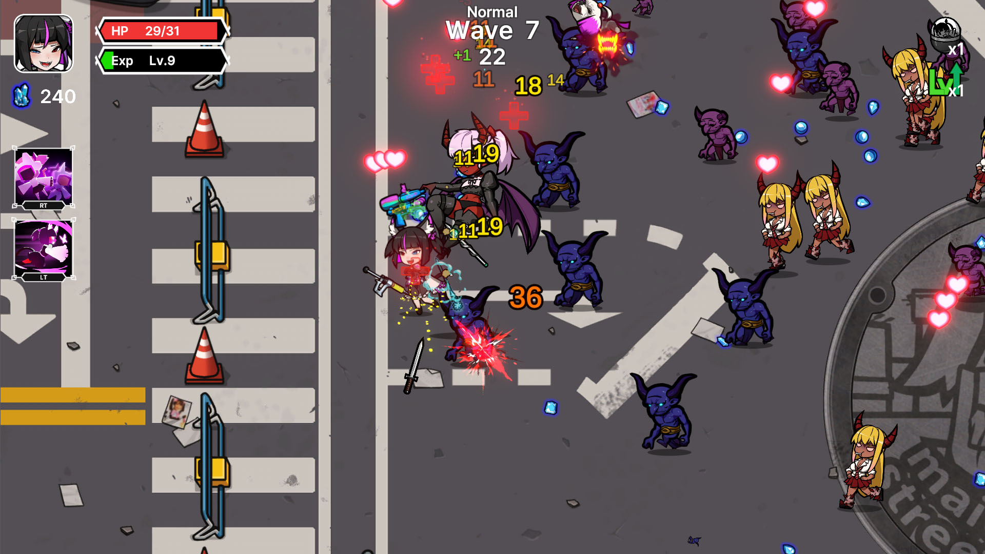 登場的女僕從冒失的公主到天才科學家,可說是各式各樣的怪咖都有。玩家要讓她們在戰鬥中獲得武器跟道具,經過各種強化才能對抗越來越強力的惡魔,並打倒在關卡最深處的強敵。