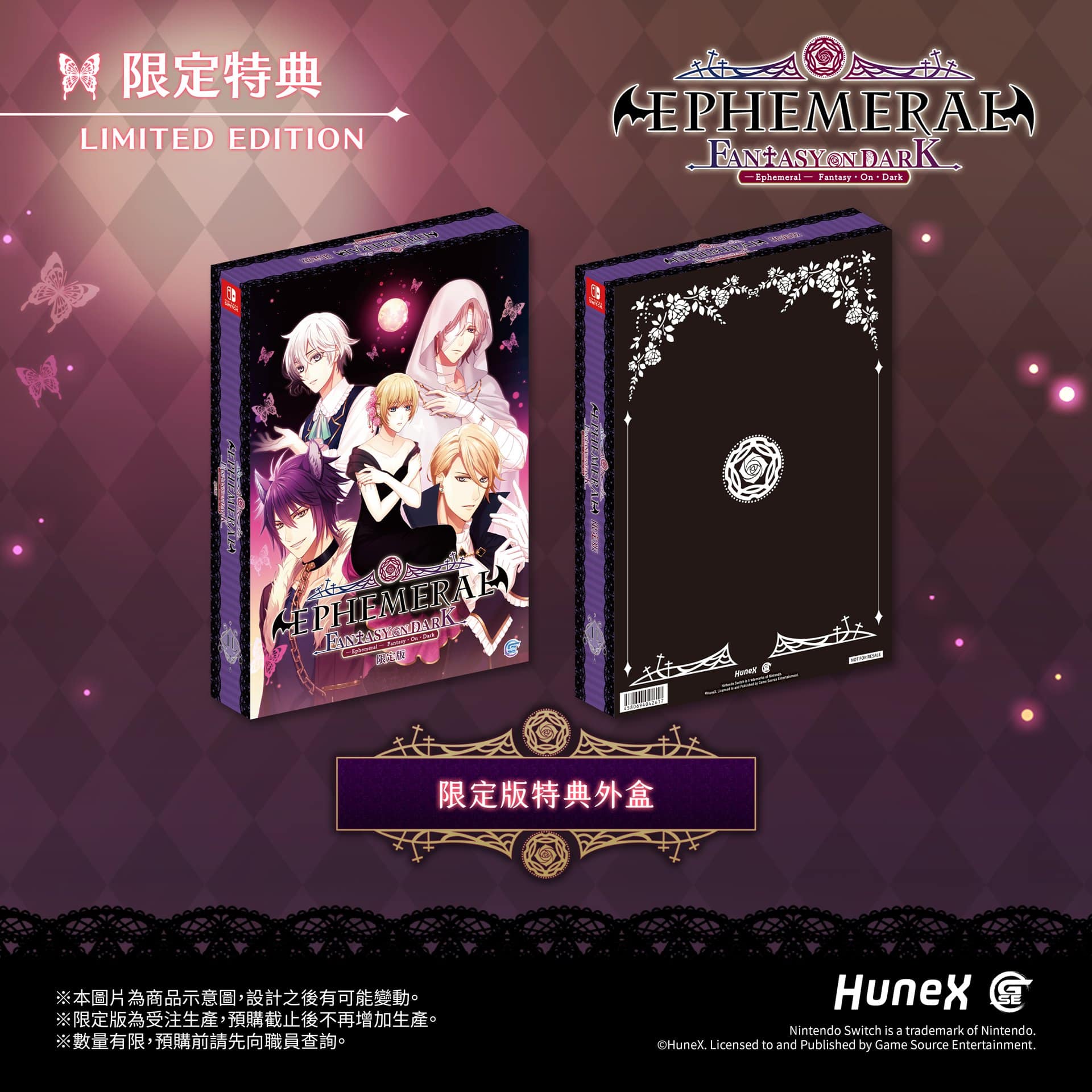 GSE 宣佈,首次與日本遊戲開發公司「HuneX」合作,推出女性向遊戲《闇之眷屬 FANTASY ON DARK》亞洲繁體中文版,並移植至 Nintendo Switch 平台,預定於 2023 年 1 月 12 日正式與各位玩家見面。並且公開《闇之眷屬 FANTASY ON DARK》的預購及限定特典資訊,為禁忌的跨種族校園愛情故事揭開序幕。