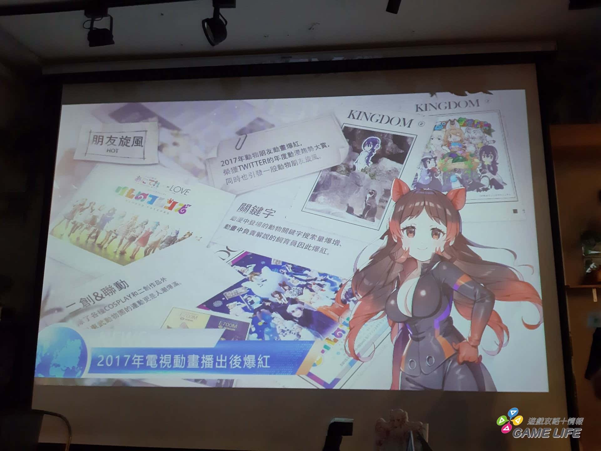 活動開場透過主持人喬米介紹《動物朋友:王國》IP 簡歷及故事背景,《動物朋友》是由角川漫畫編輯部編輯長梶井齊於 2014 年所創立的專案,由繪製《Keroro軍曹》的知名漫畫家吉崎觀音擔任動畫角色設計的作品,後續衍生手遊、漫畫、動畫、網路廣播、舞台劇等許多作品。遊戲故事背景發生在人類消失的樂園中,玩家從陌生的「王國」中醒來,一路上遇到許多具有不同獨特魅力的可愛獸娘,像是喜歡狩獵遊戲的藪貓、五音不全卻超愛唱歌的朱鷺、看似外型威猛卻懶散喜歡午睡的獅子等,獸娘們將在路途上成為玩家的夥伴,一起踏上冒險的旅程。
