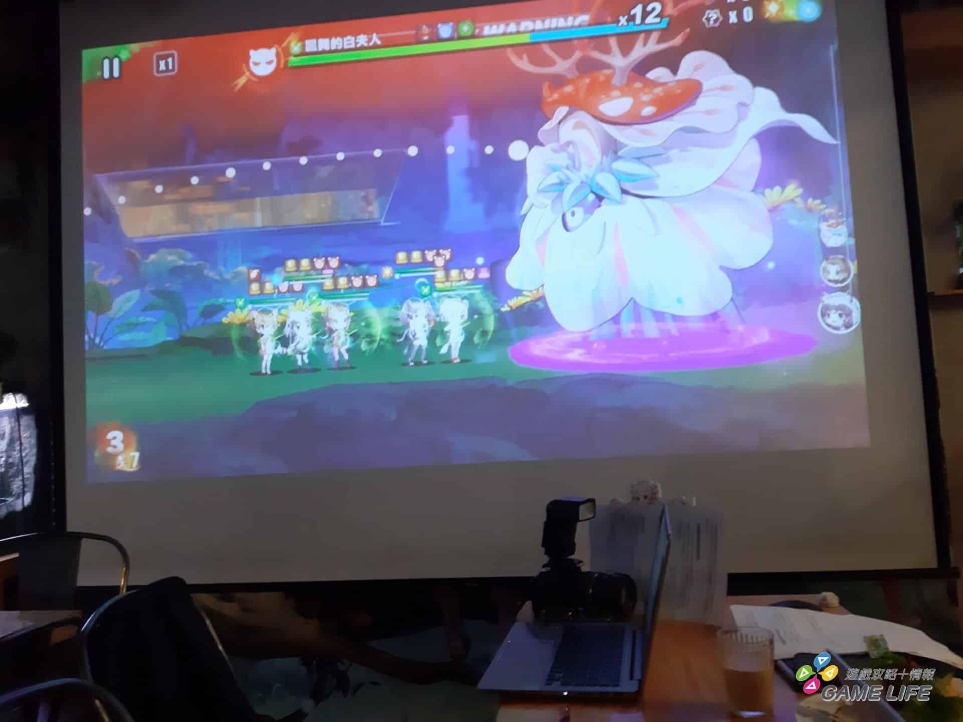 營運團隊也帶來遊戲獨特魅力的介紹,遊戲採用彈射 RPG 玩法,玩家可利用不同隊友組合產生羈絆 COMBO 加成戰力來彈射撞擊敵人,例如獅子和駝鹿搭配觸發的組合技「必勝的守護」,可以讓隊伍中所有朋友的攻擊加成 3 回合,期間每回合效果翻倍,在適當時機利用 COMBO 的增益效果可以將隊伍攻擊力最大化,制伏天藍怪。