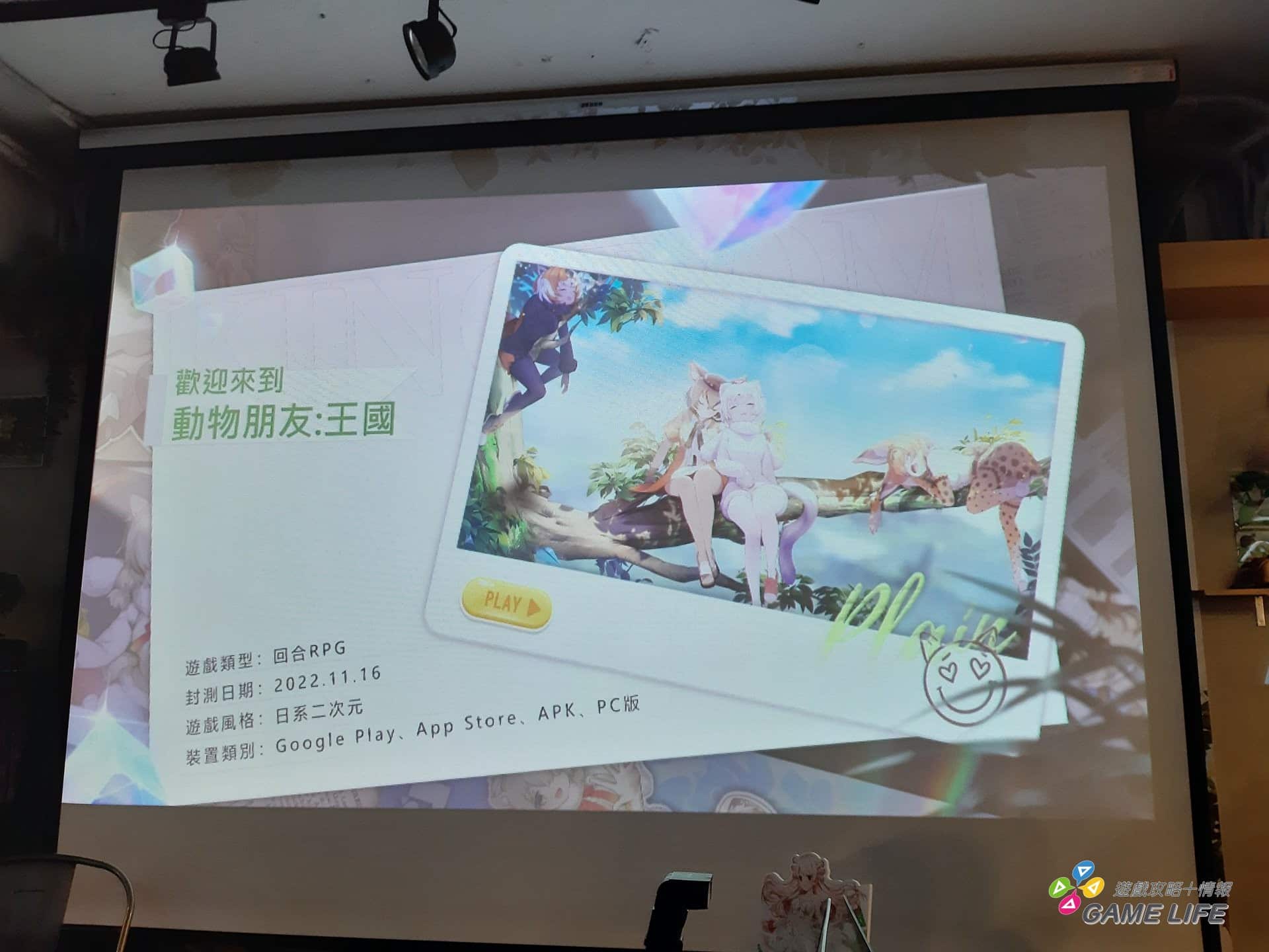 活動開場透過主持人喬米介紹《動物朋友:王國》IP 簡歷及故事背景,《動物朋友》是由角川漫畫編輯部編輯長梶井齊於 2014 年所創立的專案,由繪製《Keroro軍曹》的知名漫畫家吉崎觀音擔任動畫角色設計的作品,後續衍生手遊、漫畫、動畫、網路廣播、舞台劇等許多作品。遊戲故事背景發生在人類消失的樂園中,玩家從陌生的「王國」中醒來,一路上遇到許多具有不同獨特魅力的可愛獸娘,像是喜歡狩獵遊戲的藪貓、五音不全卻超愛唱歌的朱鷺、看似外型威猛卻懶散喜歡午睡的獅子等,獸娘們將在路途上成為玩家的夥伴,一起踏上冒險的旅程。