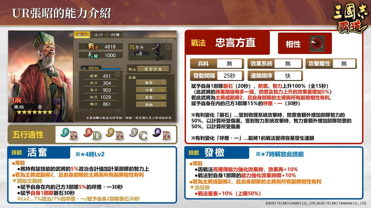臺灣光榮特庫摩宣布,日本光榮特庫摩推出的 MMO 戰略模擬手機遊戲《三國志 霸道》已進行遊戲更新,全新 LR 武將 LR 張郃、LR 呂蒙,還有 UR 王異在極求賢令中登場,UR 張昭也將透過活動報酬和 30 日卡登場。