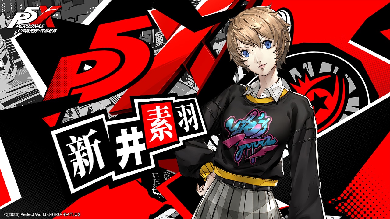 玩家們將在 P5X 中認識全新的怪盜團成員,新井素羽。她是一位性格直爽、開朗、細心的女孩,與主人公一樣就讀己刮學園,在校內也受到許多同學的喜愛。相較於仔細運用邏輯思考,她更喜歡憑直覺行動,初始人格面具為阿爾維達。