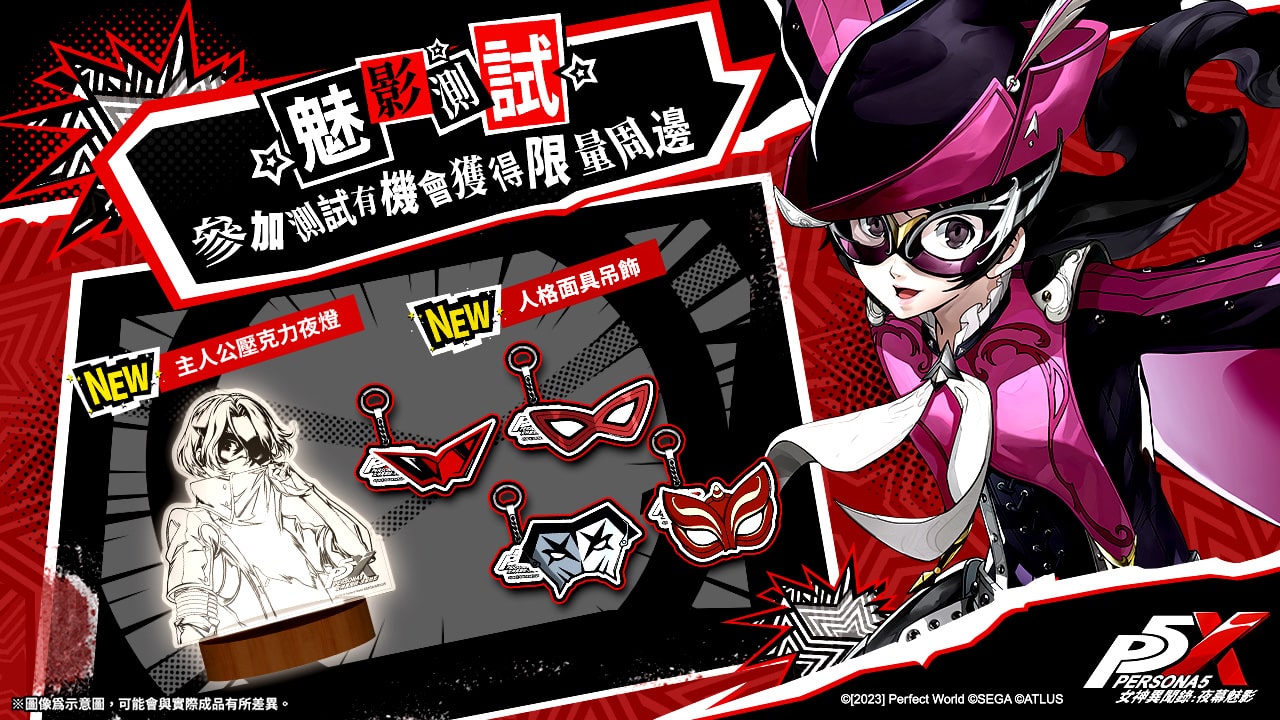而為了讓玩家更深入感受遊戲世界觀及角色故事,同時還將新增數位怪盜角色卡牌及社團小遊戲。同時填寫招募資料除可抽限量測試資格外,還有機會獲得不同角色的面具吊飾。參與魅影測試並符合活動資格的玩家,有機會能獲得限量主人公造型夜燈。