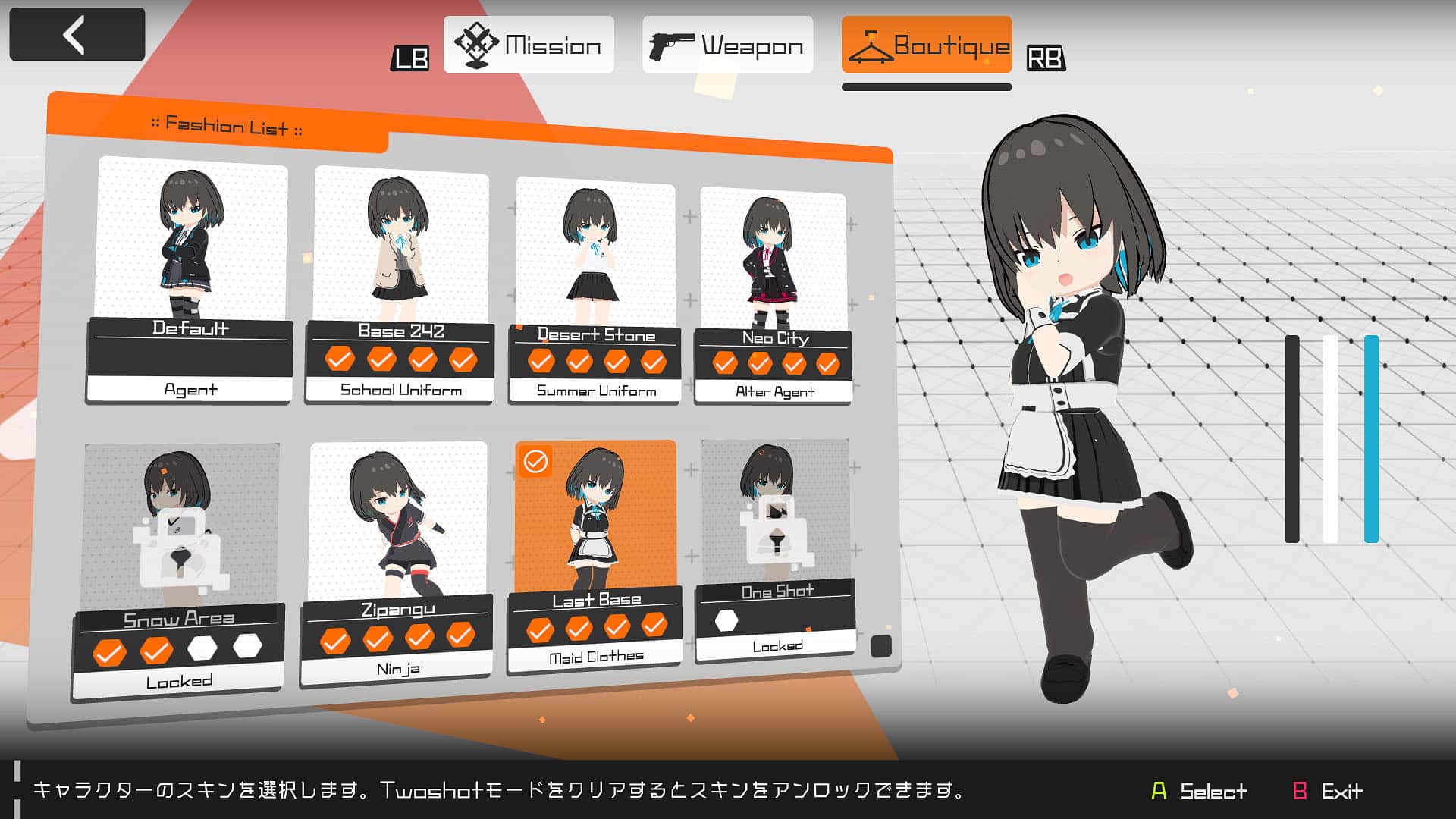本作中,玩家要操作假扮女高中生的特務潛入敵人基地。遊戲基本為射擊遊戲,玩家可以利用拋投物件等各種特技,來攻略總計 240 關的關卡。遊戲也添加解謎用的益智要素跟換裝要素,讓玩家可以設計出符合自己喜好的女特務。
