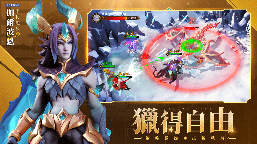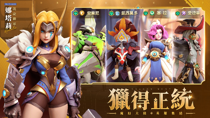 《獵龍聯盟》開創性搭載極速養成體係,僅需養成四位英雄,即可拉滿全員等級,從此告別選擇困難症。遊戲更提供「一鍵全隊速成模式」,無需切出即可快速提升實力。主打放置掛機,也精簡無聊玩法。主打上手迅速,也包含策略深度。