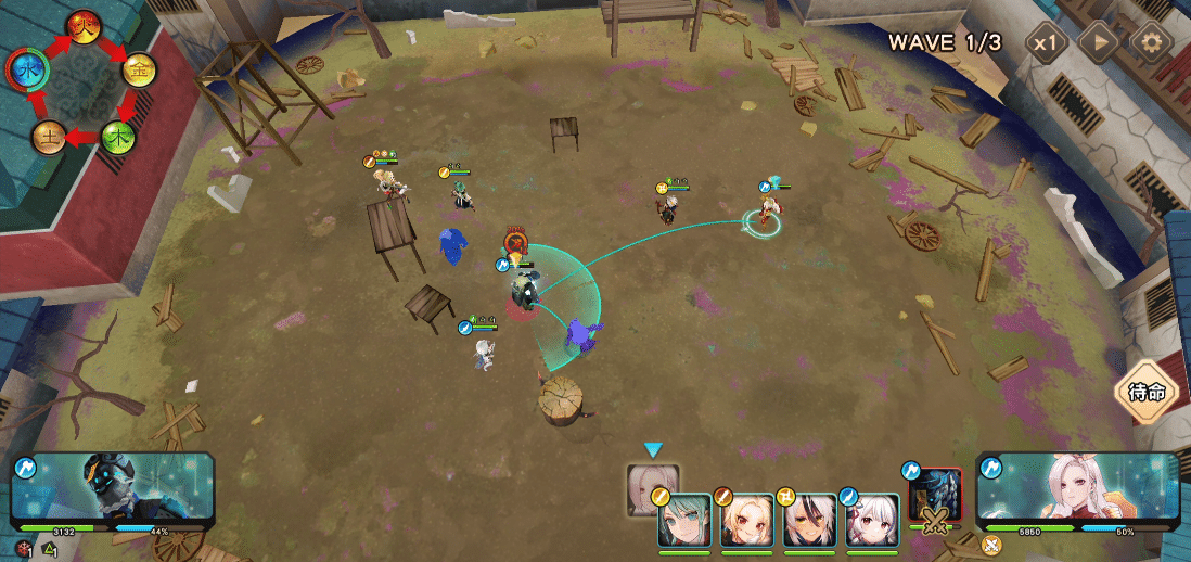 此外根據遊戲的說明,過關時增加的疲勞值會受到剩餘 HP 影響,意味著維持血線可以減緩疲勞值的消耗,所以如何在戰鬥中減少血量的損耗也是很重要的。本作有五行屬性相剋的設計,採用了中國古代五行「金、木、水、火、土」,屬性剋制敵人時傷害會增加 1.5 倍,反之被攻擊時也會受到 1.5 倍的傷害,如果能適當運用屬性相剋,盡可能快速消滅敵人,並且避免受到屬性相剋的攻擊,對於減緩疲勞值消耗也會有一定的幫助。