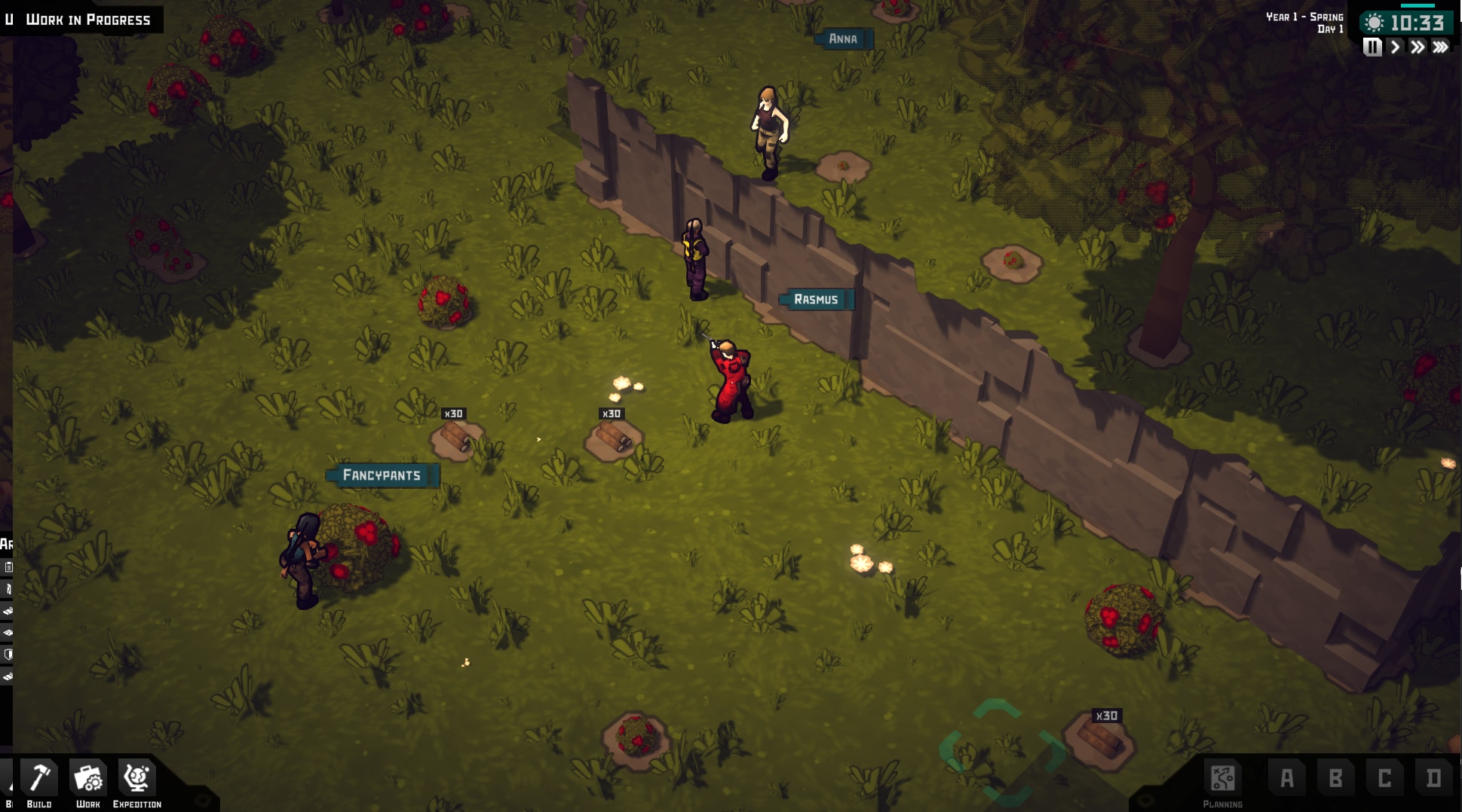 基地裡的人們都必須要玩家來管理飲食跟健康狀況,就算沒有受傷,也可能因為身體不適而無法行動。玩家要想辦法讓基地中的人們在殘酷的環境下以極少的資源生存下來,並保持幸福指數來維持整個團隊。