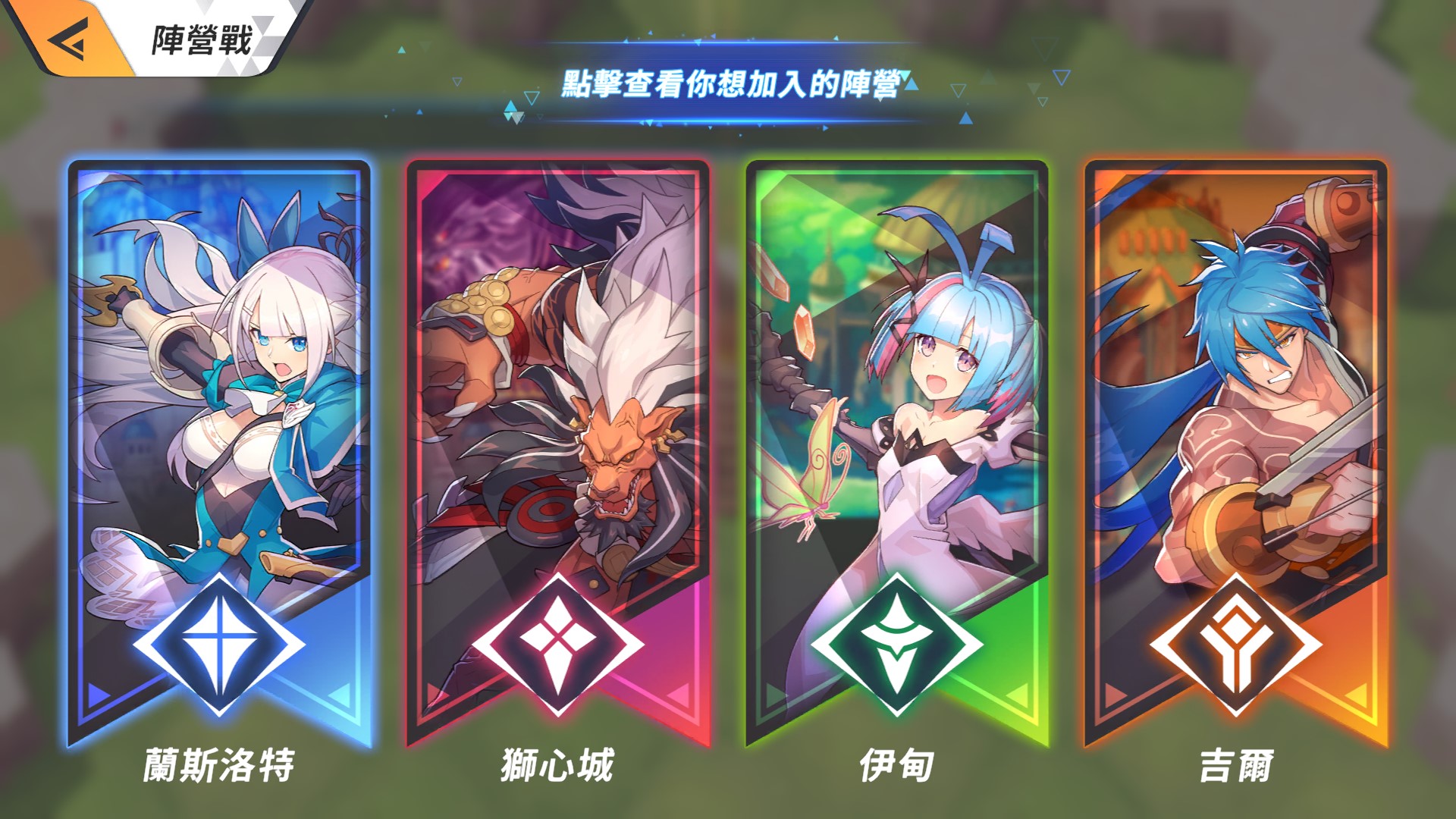 社群之間也釋出四大城市的陣營戰,玩家可以代表《王領英雄》世界中的四大城市「蘭斯洛特」、「吉爾」、「伊甸」、「獅心城」,籌組公會與提升軍階;爭奪領土與建設城堡。最中央的神殿中沉睡著上古幻獸,玩家有機會取得這種奇幻兵種。塔防加上國戰的豐富要素,是本次遊戲的主要特色之一。