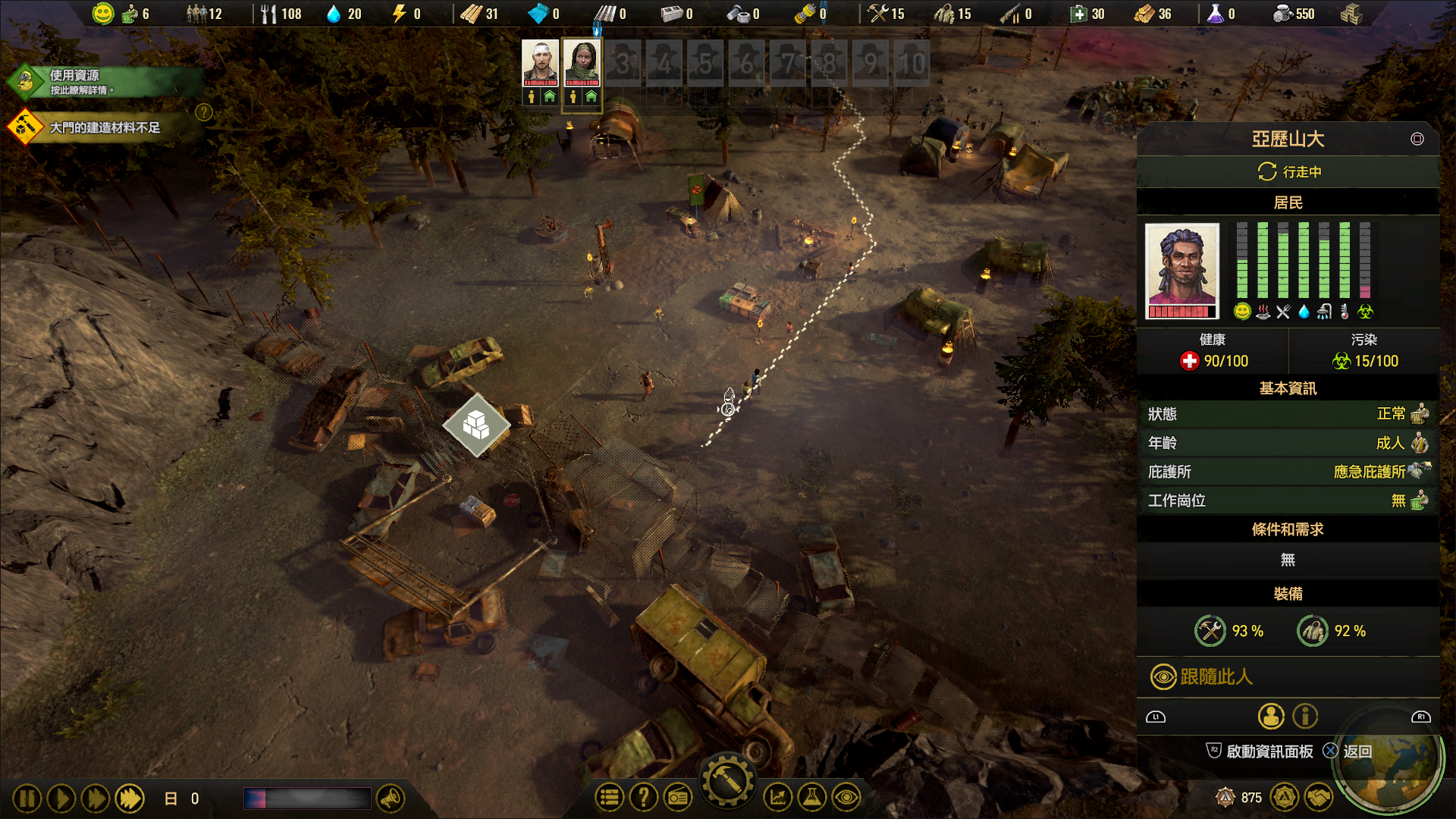 營地建設完成後,雖然可以馬上發射信號彈召集殖民地的居民,但在此建議把不需要耗費資源也能建設的「帳篷」與「糧倉」等先建設好。如果是在靠近水源的地圖,請優先建設攸關生存的「集水箱」,才能穩定的獲取水資源。當第一批居民抵達殖民地後,就可以開始認真建設殖民地了。除了要補充不足的住所之外,也要建設能收集擴大殖民地所需資源的建築物。