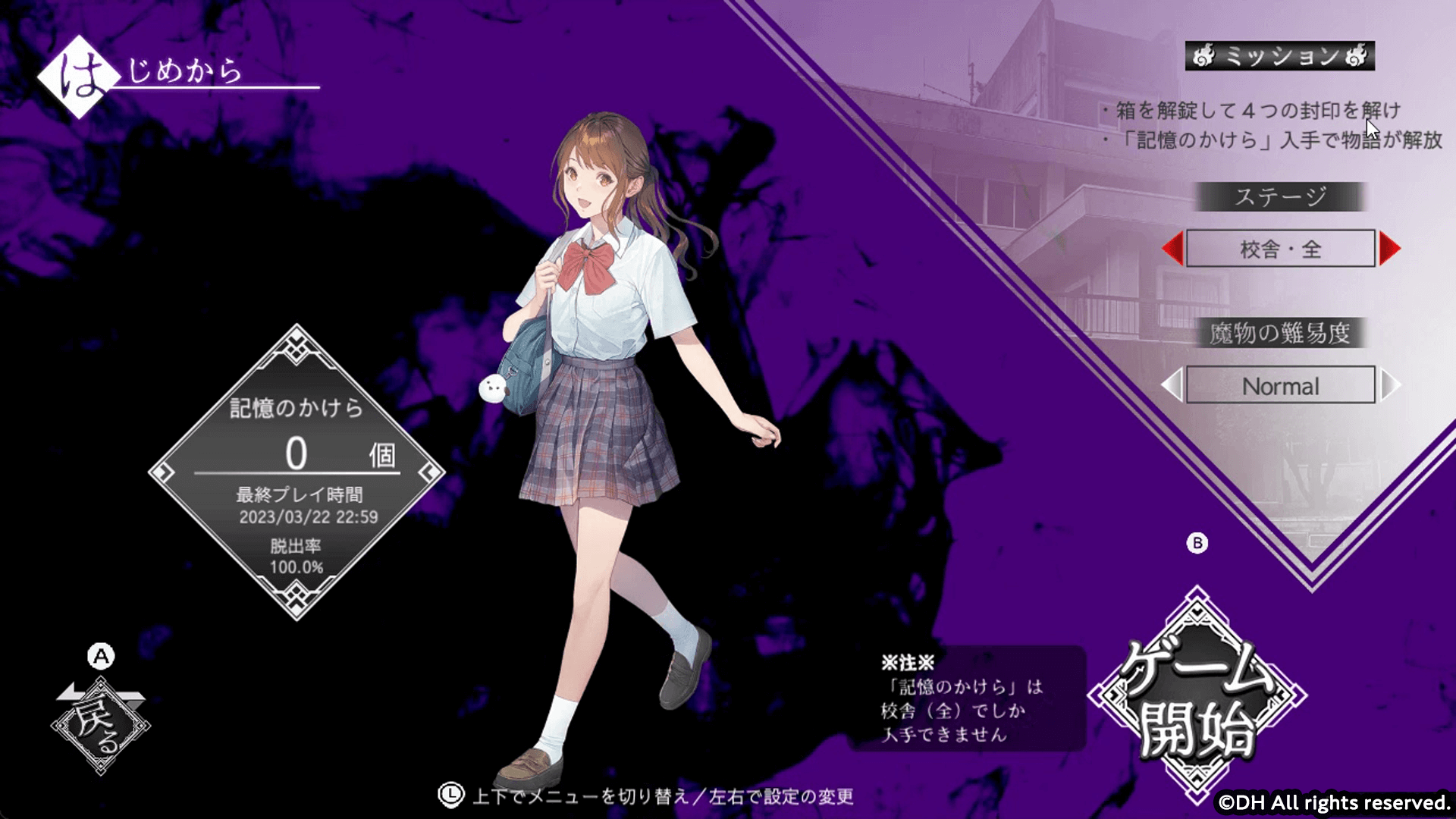 居住在平凡的鄉下小鎮「守津杜」的高中生「葉月」與好友們一同造訪了廢棄的學校,並在好奇心驅使下搬開了古井的巨石,因此被困在了廢棄的學校之中。葉月必須與朋友們同心協力解開封印,一起逃出這座廢校。玩家可在單人模式收集「記憶的碎片」,收集「碎片」能了解遊戲的世界觀、解開廢校的謎團,並欣賞各角色的專屬劇情。
