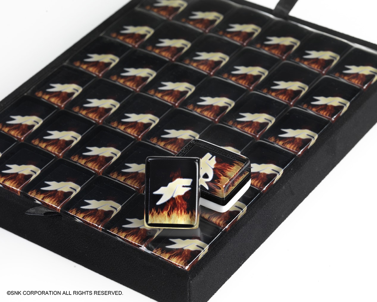 ⚫ 高透壓克力草薙不滅之火牌背麻將:每張麻將牌背面都印有草薙京的經典元素,堪稱藝術品