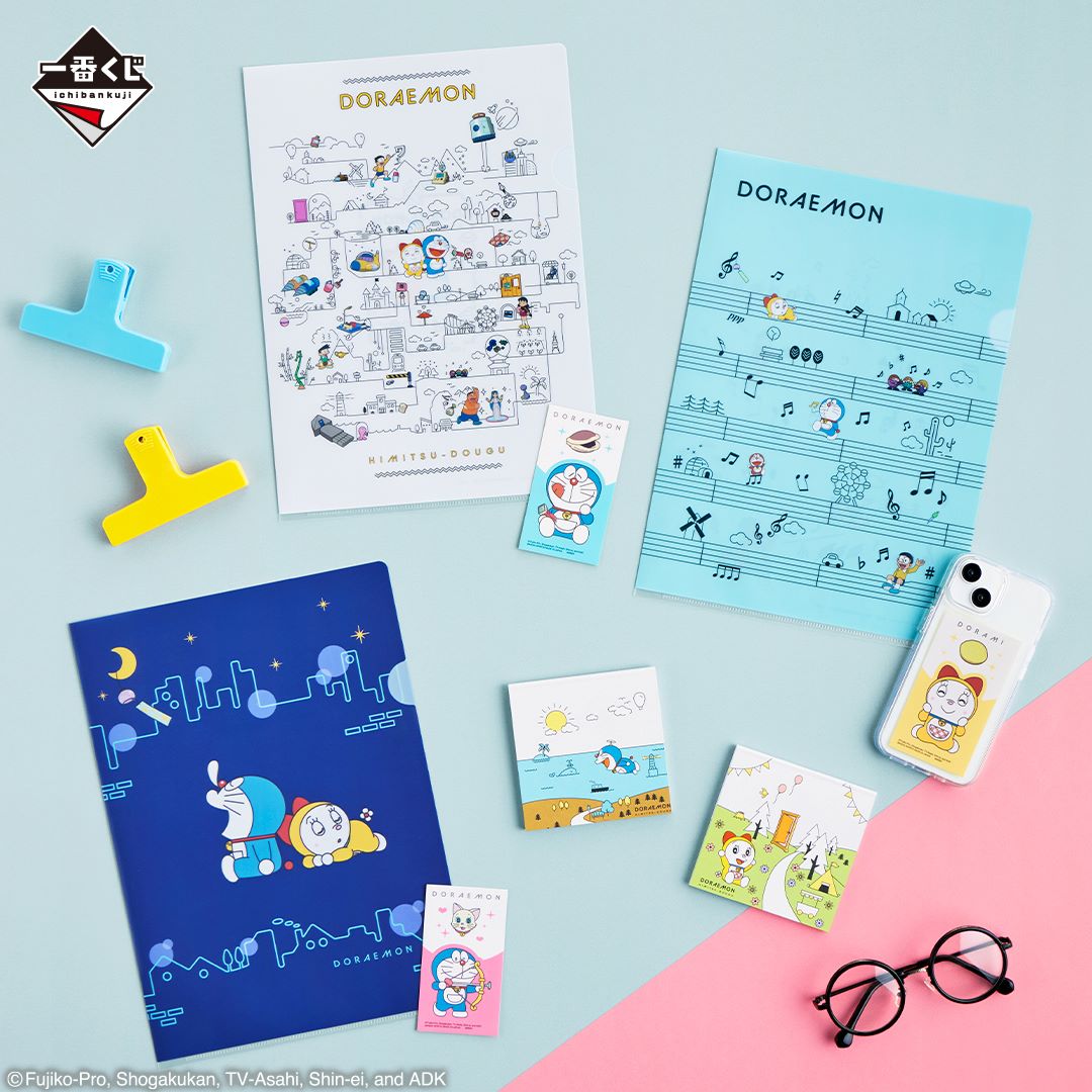 D 獎將哆啦 A 夢、哆啦美化身為精美的《哆啦 A 夢》文具組,此文具組包含三款不同設計的文件夾與貼紙組,以及兩款哆啦 A 夢和哆啦美在大自然中遊玩的便利貼,便利貼紙張還可以對折立起,且中獎者可自行選擇喜歡的款式。E 獎的毛巾不僅有經典道具「記憶吐司」,還有紅色的「迷你哆啦」,其餘三款造型繽紛可愛,五款樣式可自行選擇;F 獎的六款吊飾更是納入「縮小燈」和「任意門」等經典道具,同樣可選款。