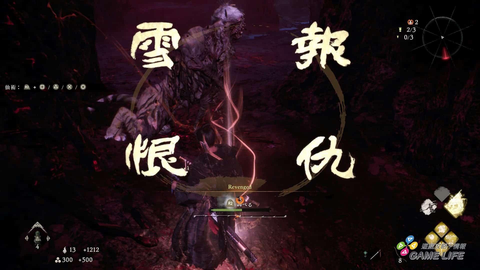 剛剛提到本作其實很像《仁王 2》的原因之一也在戰鬥系統,基本動作就是輕攻擊、重攻擊、防禦、迴避、吃回復藥等。延伸要素則有使用武器的戰技跟因應屬性而變化的仙術,但因為強敵攻勢都相當猛烈,所以基本動作能不能控得好都是這種高難度動作遊戲的關鍵。