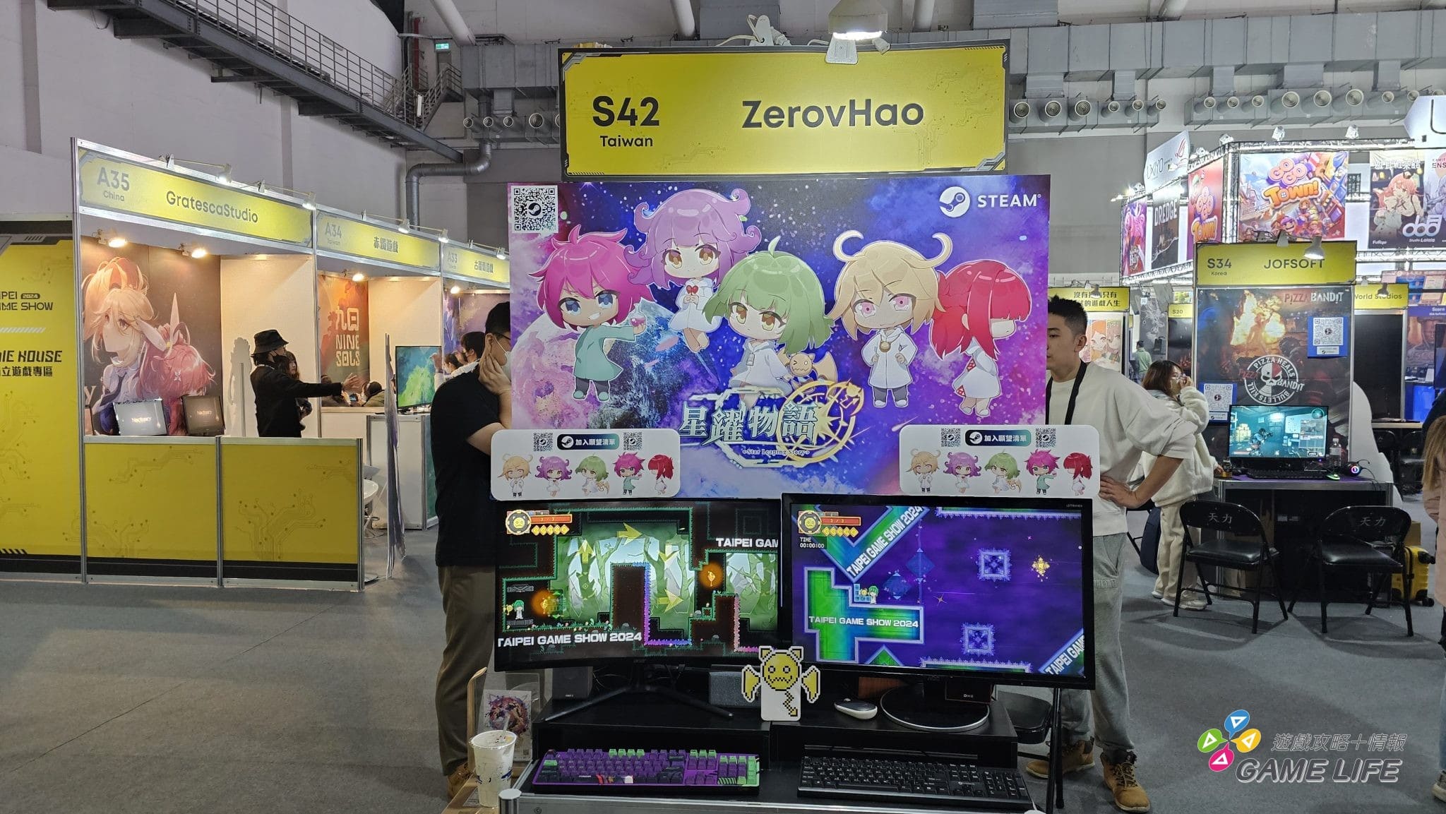 最右側的「Indie House 獨立遊戲專區」意想不到地可以看到幾家廠商跟以往不同類型的新作,像赤燭遊戲、數位卡夫特等等都推出了些跟過去作品不同風格的新作,另外整體跟 2023 的 G8 展相近,以日式美少女為主體的遊戲相當多種。還有就是可能參展的國家跟種類變多了,一些遊戲也不在乎是否有繁體中文,直接以簡體中文等自國的文字在宣傳。