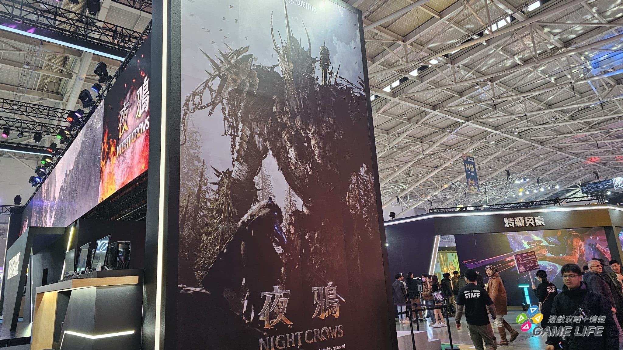不過玩家如果先從中央區進去,應該都會先被幾款來自中國的手遊吸走目光,《白荊迴廊》、《絕區零》、《鳴潮》、《少女前線 2:追放》、《碧藍航線》、《勝利女神:妮姬》等都用招牌的各式美少女攤位來吸引玩家目光。日式手遊的部分主要以台灣幾款有中文版的遊戲為主,包含《Fate/Grand Order 繁中版》、《賽馬娘 Pretty Derby》、《我想成為影之強者》等等,只是都在中間的位置,剛進入會場可能不會馬上注意到。