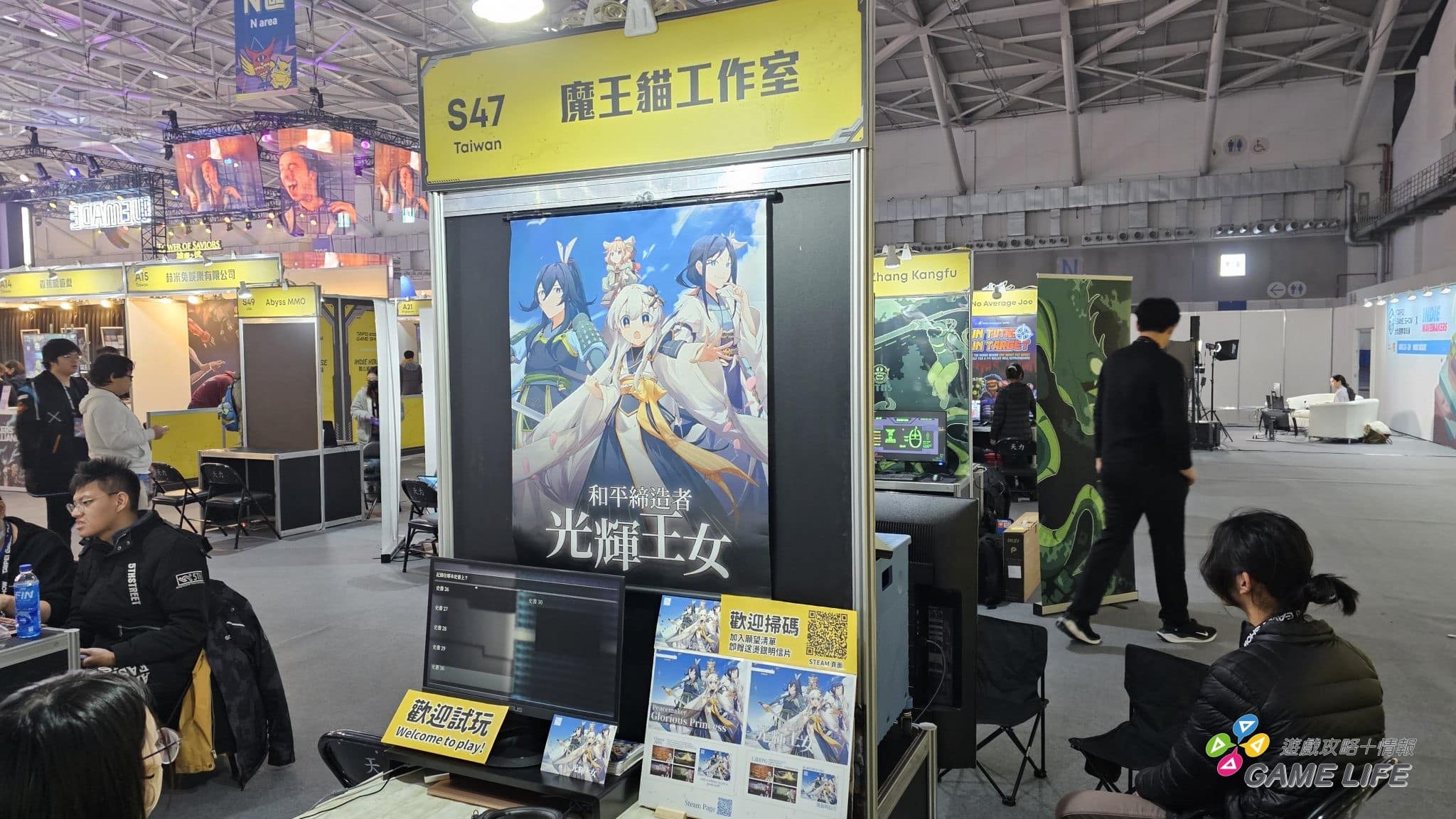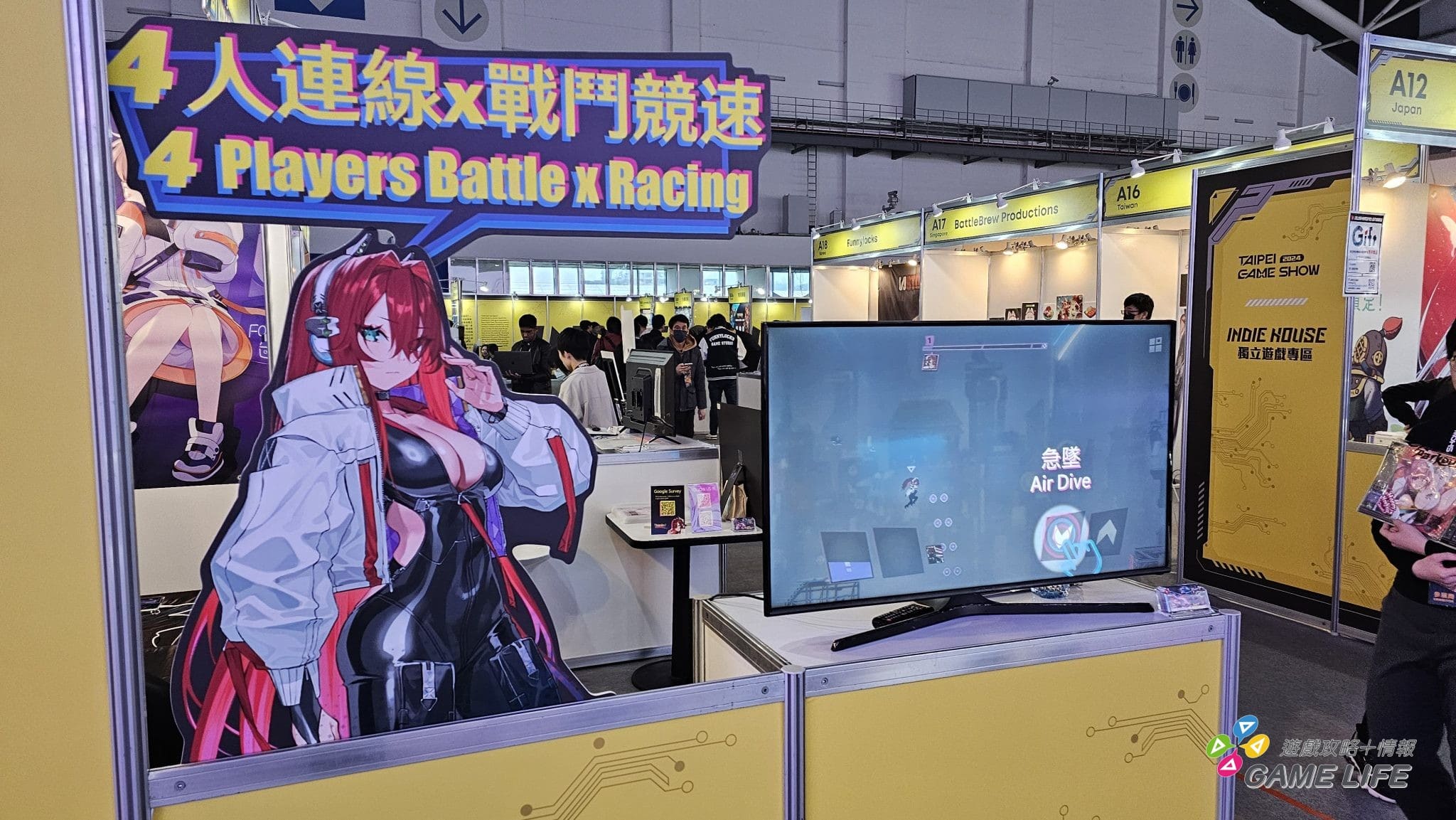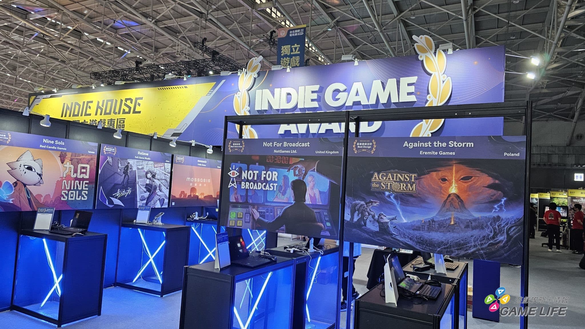 最右側的「Indie House 獨立遊戲專區」意想不到地可以看到幾家廠商跟以往不同類型的新作,像赤燭遊戲、數位卡夫特等等都推出了些跟過去作品不同風格的新作,另外整體跟 2023 的 G8 展相近,以日式美少女為主體的遊戲相當多種。還有就是可能參展的國家跟種類變多了,一些遊戲也不在乎是否有繁體中文,直接以簡體中文等自國的文字在宣傳。