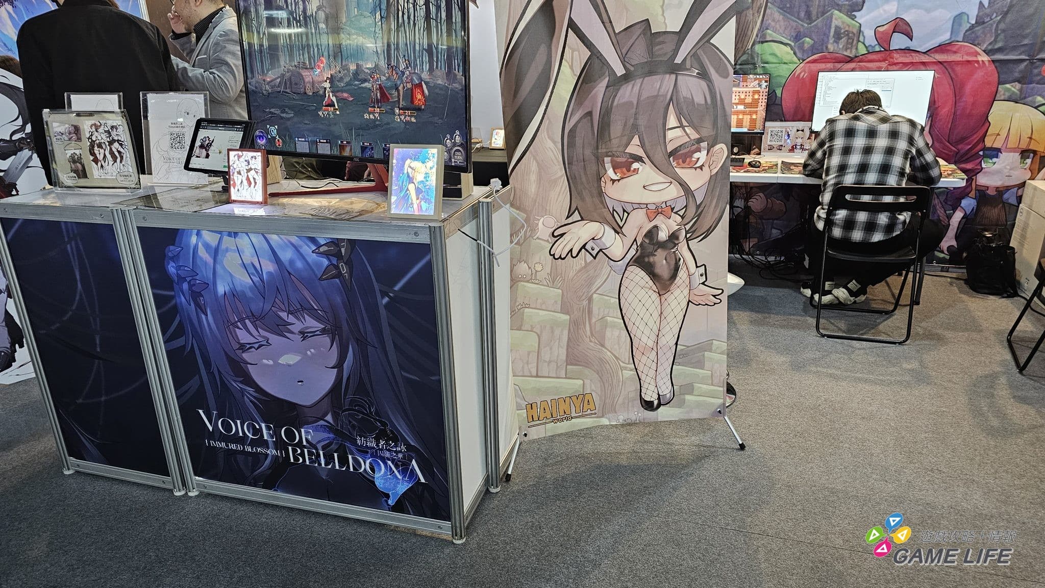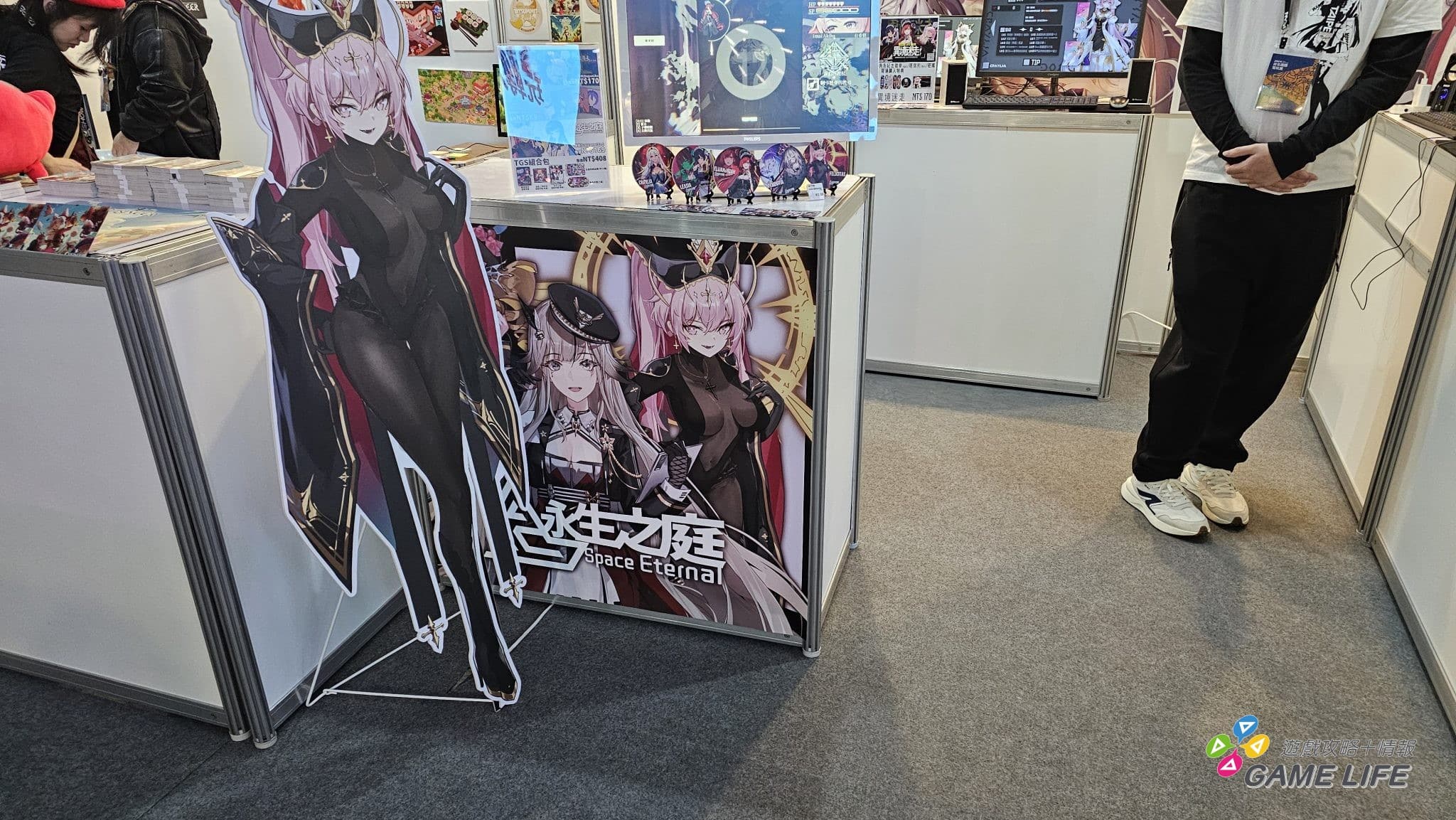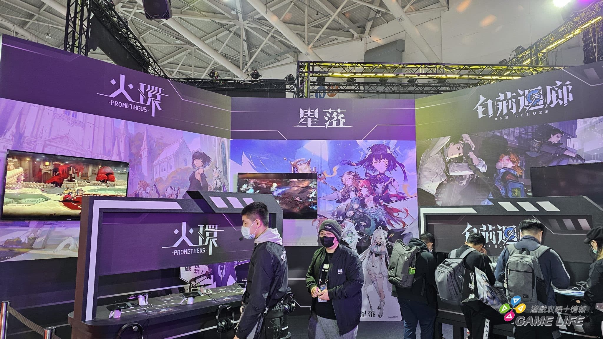 不過玩家如果先從中央區進去,應該都會先被幾款來自中國的手遊吸走目光,《白荊迴廊》、《絕區零》、《鳴潮》、《少女前線 2:追放》、《碧藍航線》、《勝利女神:妮姬》等都用招牌的各式美少女攤位來吸引玩家目光。日式手遊的部分主要以台灣幾款有中文版的遊戲為主,包含《Fate/Grand Order 繁中版》、《賽馬娘 Pretty Derby》、《我想成為影之強者》等等,只是都在中間的位置,剛進入會場可能不會馬上注意到。