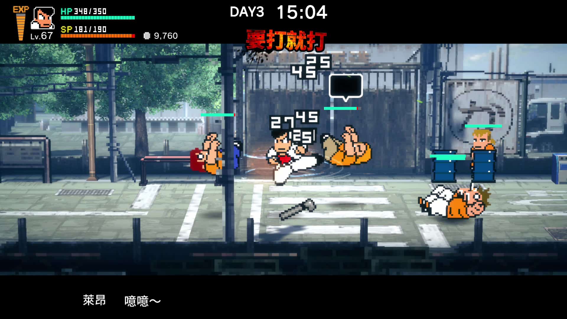 玩家可以擊倒敵人獲得經驗值來提高等級,將升級時獲得的點數自由地分配給各種素質來培養角色。另外,利用擊倒敵人時掉落的道具和金錢,不僅可以獲得有用的裝備,還可以學習《熱血》系列中熟悉的必殺技及新增加的必殺技等,體驗培訓的樂趣和爽快的動作感。