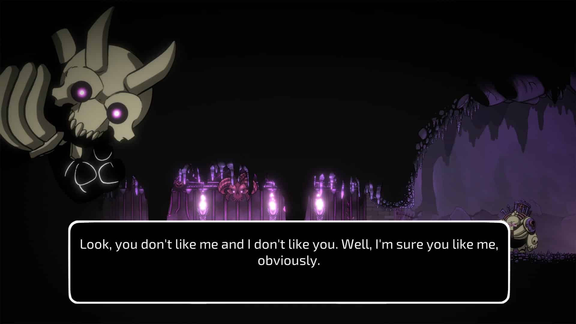 《魔骨》的全部場景和角色動畫,都由手繪逐幀完成。就像二十世紀前的經典動畫一樣,希望賦予角色親切自然又栩栩如生的動畫效果。同時作為一個多話又搞笑的反派,魔骨會在很多時候主動向玩家搭話。灰色幽默、低俗笑話、流行文化無所不聊。