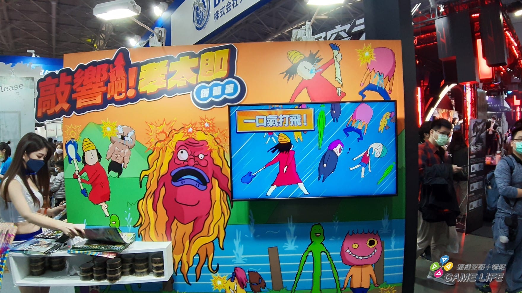 如果是喜歡 Vtuber 的玩家可以留意,兩位 Vtuber 會在該攤位每個整點時間現身,大約進行 3 到 5 分鐘的直接對話。其他時間前往該攤位就是以各種活動與觀賞旗下遊戲的宣傳影片為主。D. H 的攤位主要分為三區,在本次沒辦法提供試玩的作品,就會以螢幕播放宣傳影片的方式介紹。