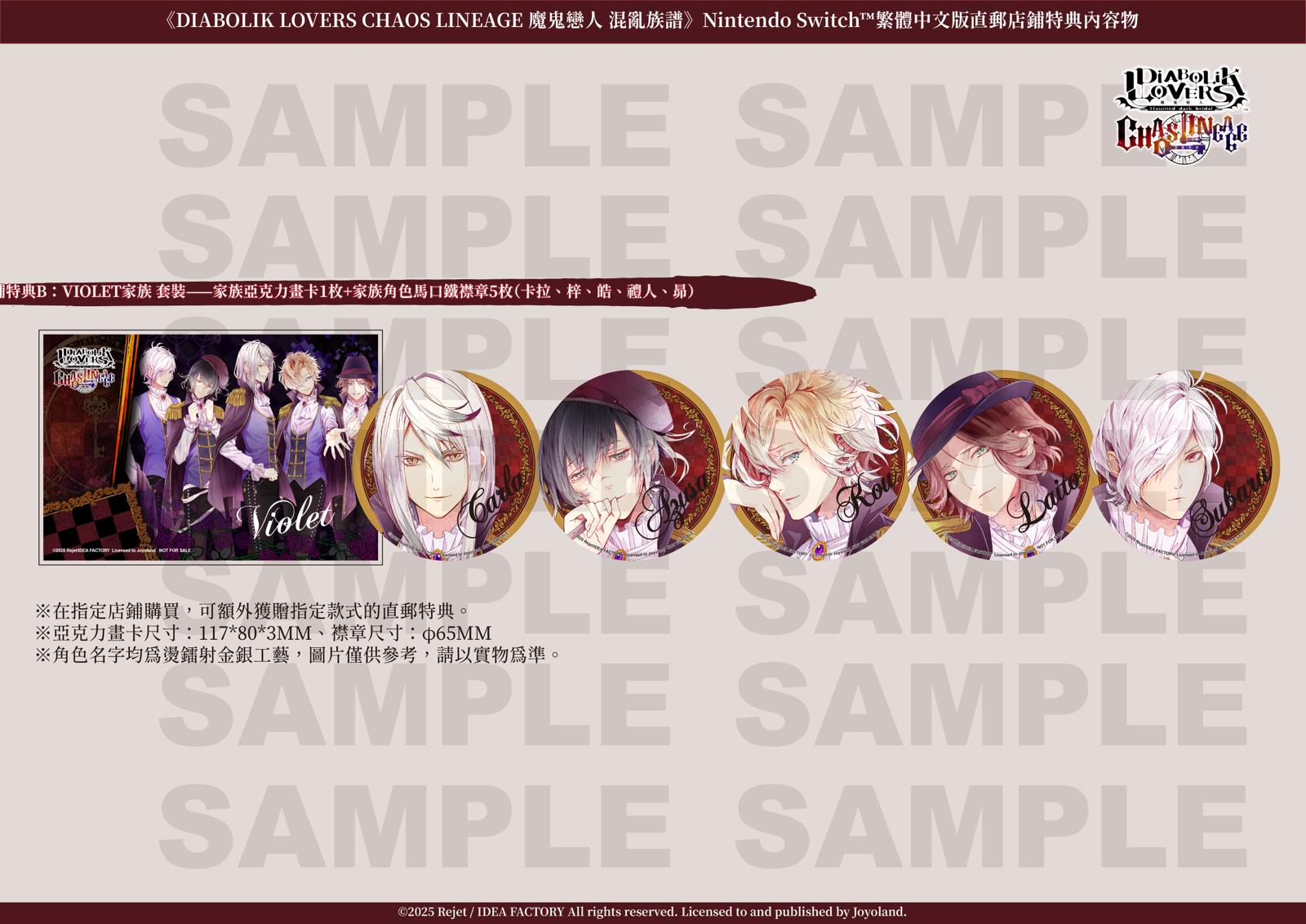 JOYOLAND 宣佈,Idea Factory 旗下乙女遊戲品牌「Otomate」及 Rejet 社共同開發製作的系列遊戲 DIABOLIK LOVERS《魔鬼戀人》系列作品最新作《魔鬼戀人 混亂族譜》即將於 2025 年 8 月 14 日推出繁體中文版。該系列描繪了主人公與抖S吸血鬼之間甜蜜而刺激的戀情。