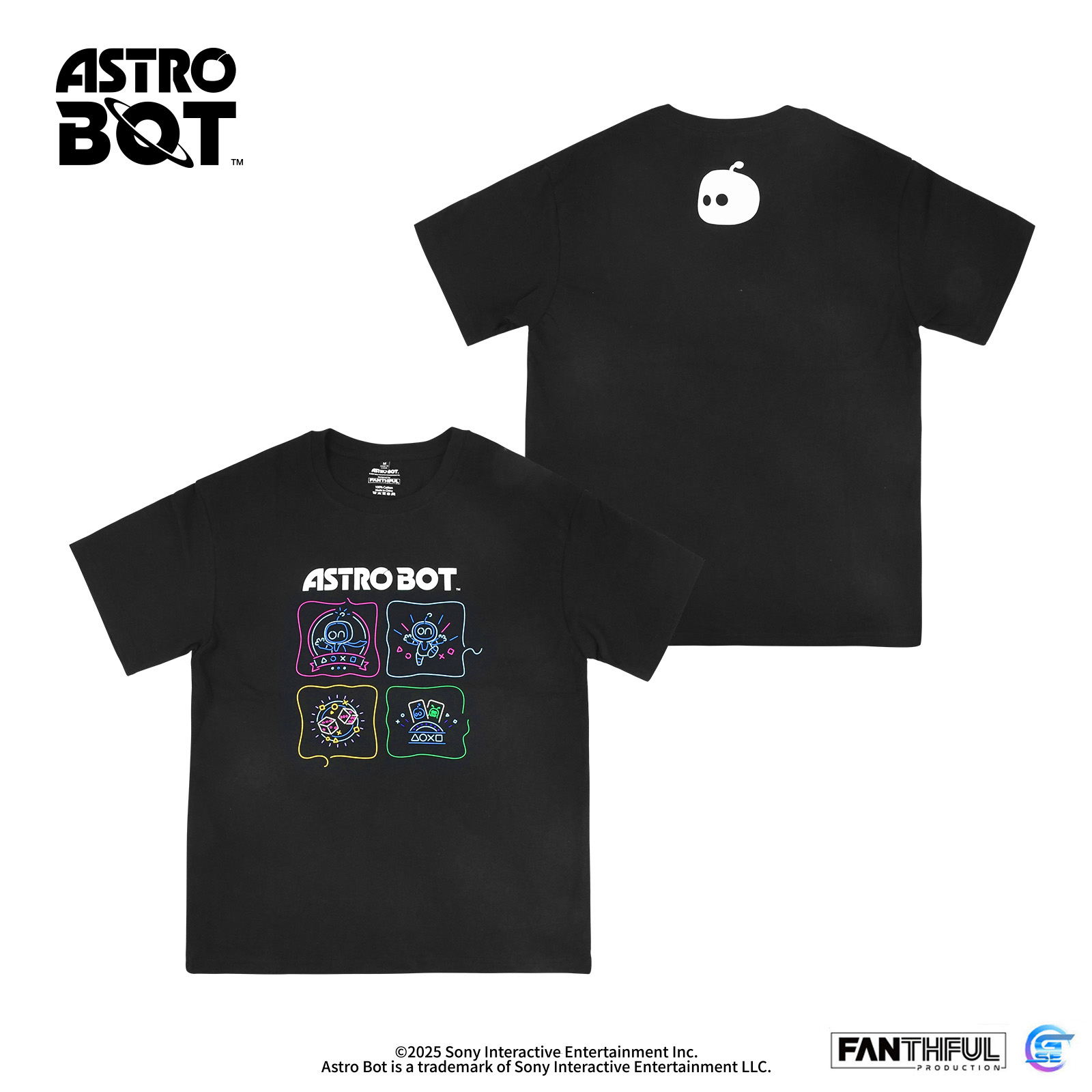 也有主題 T 恤 4 個霓虹燈管風格的 ASTRO BOT 圖案呈現在黑色T恤之上,彷彿置身於夜晚之中,華燈初上。背面則是遊戲中的機器人 loading 圖標,如同被正面霓虹燈映照出的剪影一般,趣味性十足。最後還有 6 枚方形徽章,選取了玩家們熟悉的小機器人經典場面作為素材,組合出了這樣一套風格獨特的徽章套組。收集的欣喜,如打開金色寶箱和獲得獎盃;戰鬥的動感,如旋轉攻擊痛擊隊友和普通連續拳;當然情懷滿滿的 PlayStation 初代主機也囊括其中。