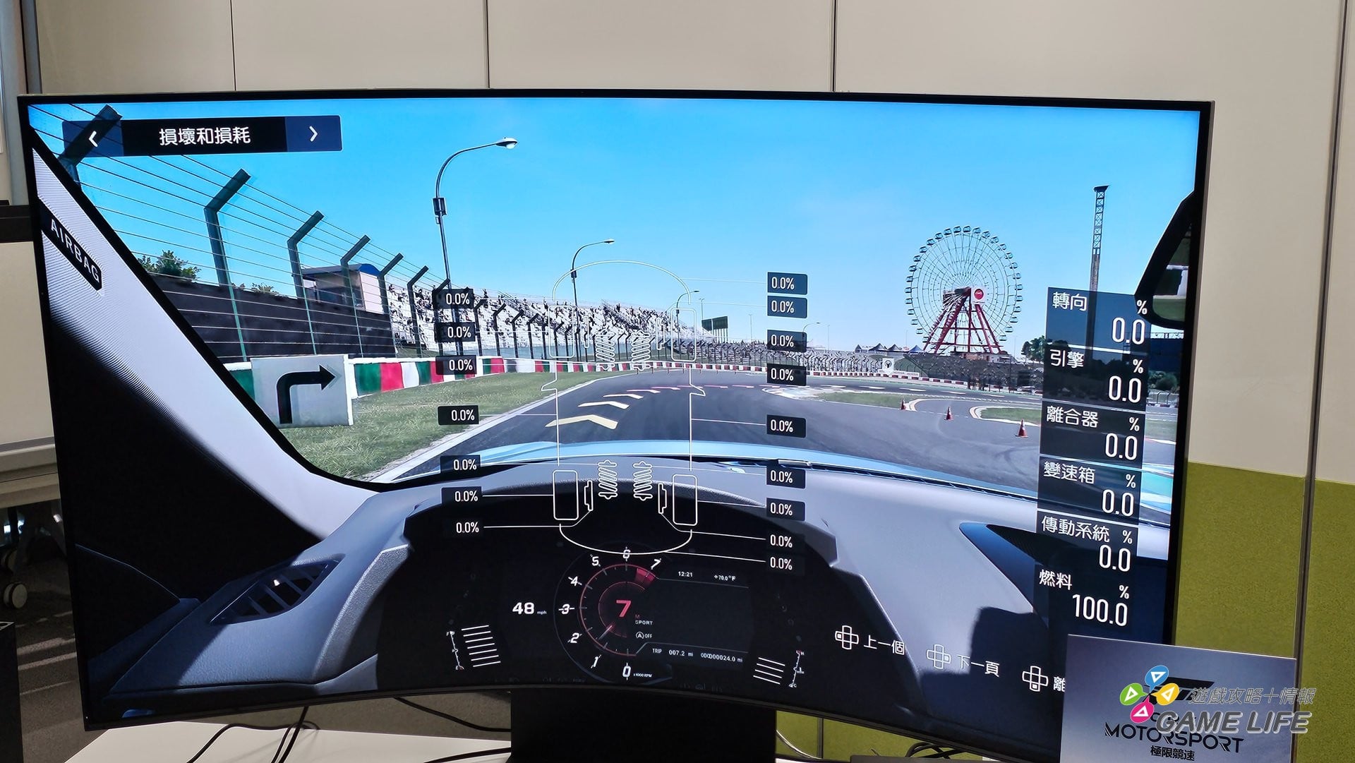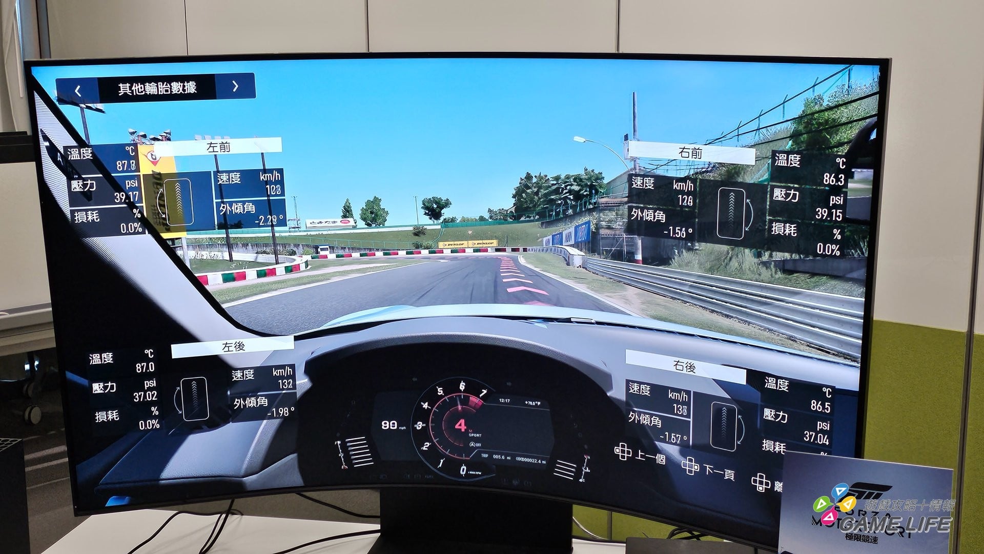 另外就是加入了各種可以觀察的計量表,玩家可以練習時切換各種介面去觀看數值計算自己的駕駛狀況,例如輪胎抓地力、輪胎當下溫度等等,藉此學習駕駛技巧。就這部份來看,可以理解到本作講求的擬真體驗,是真的可以讓玩家去訓練賽車技術,或者是讓現實賽車選手藉此來進行訓練。