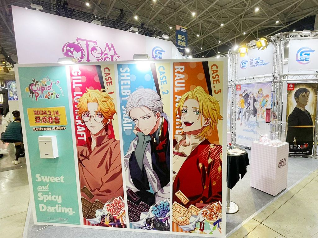2024 台北國際電玩展正式開展,GSE 旗下乙女品牌「GSE Otome」首度登陸台灣參加這次活動,身穿中華風服飾的 Parasite7 成員們帶著充滿甜蜜氣氛的巧克力和棒棒糖,特地來到台北國際電玩展跟大家拜年。高達 2.5 公尺的打卡牆上展示著由 Yuuya 老師特意為即將在 2 月 14 日推出的《共生邱比特 -Sweet & Spicy Darling.-》Nintendo Switch 亞洲盒裝版所繪製的全新封面圖,這也是該立繪首次在線下活動中亮相。