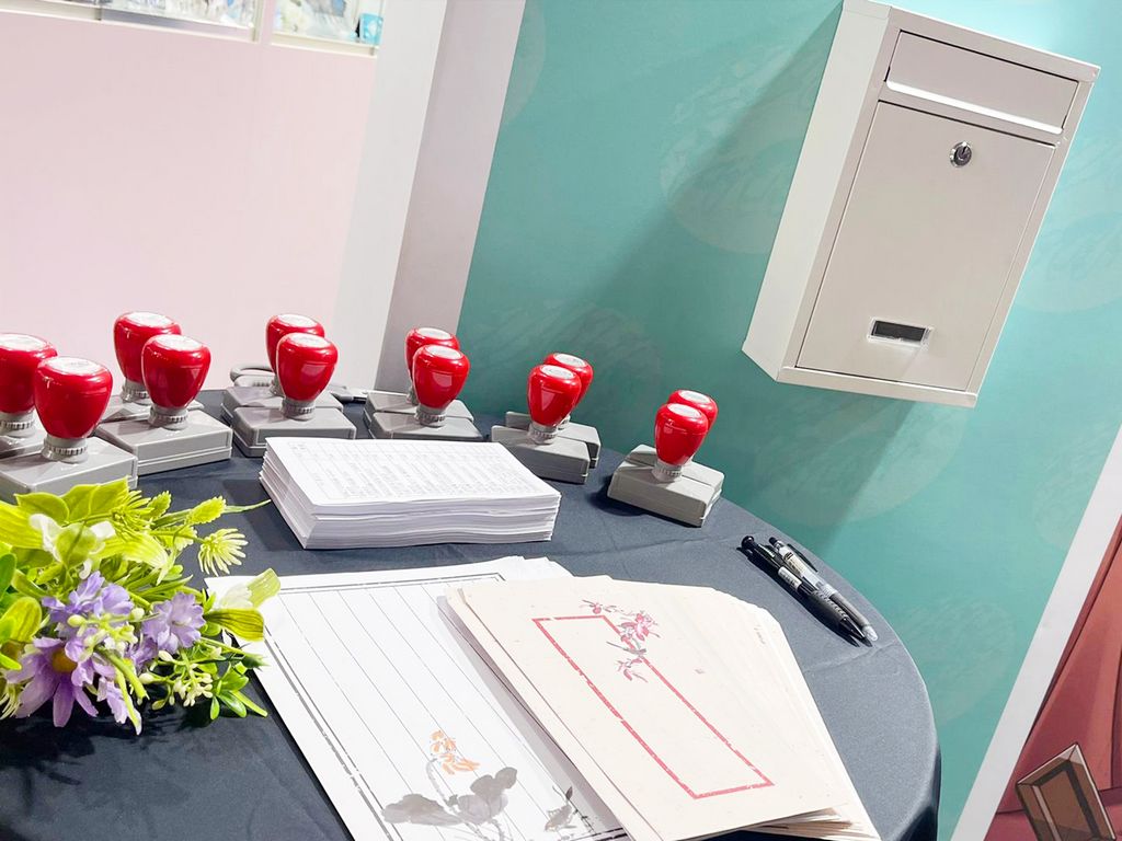 另外,《共生邱比特 -Sweet & Spicy Darling.-》打卡牆旁邊設置了一個「乙女部心願郵箱」,經過攤位的粉絲們可以攜帶親手撰寫的感謝信給所喜愛的製作團隊成員及老師,然後將信件投入郵箱內,GSE 將親自把這些心意書信送交給每位收件人。