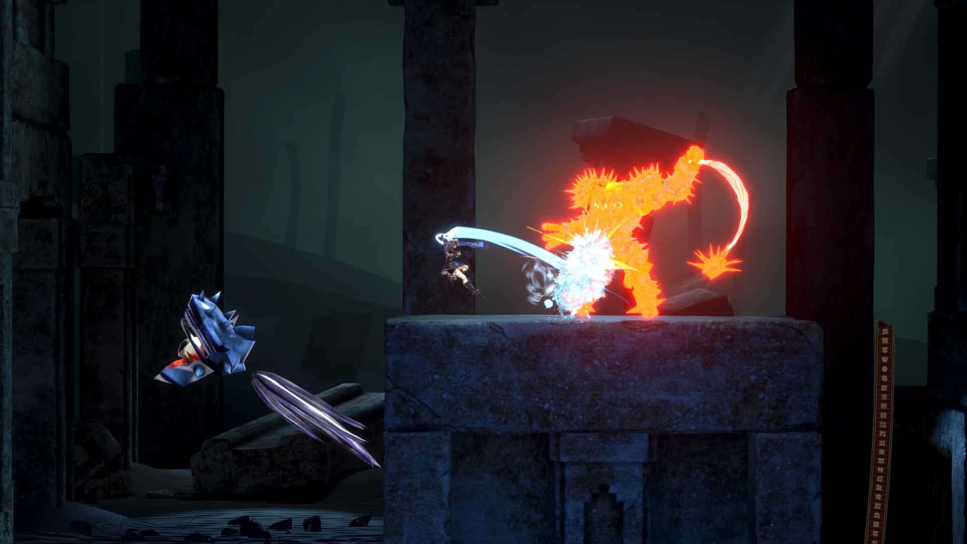 即使風格有所變化,但那充滿活力且快節奏的戰鬥仍一如既往般令人享受。戰勝被設計成 《風之旅人》中令人敬畏的「搜索怪」的龍族 BOSS,並獲得「神秘圍巾」。像 《風之旅人》中心愛的圍巾一樣,此一強大的裝備可提高防禦、智力和精神,同時對火和光元素有額外抵抗力。