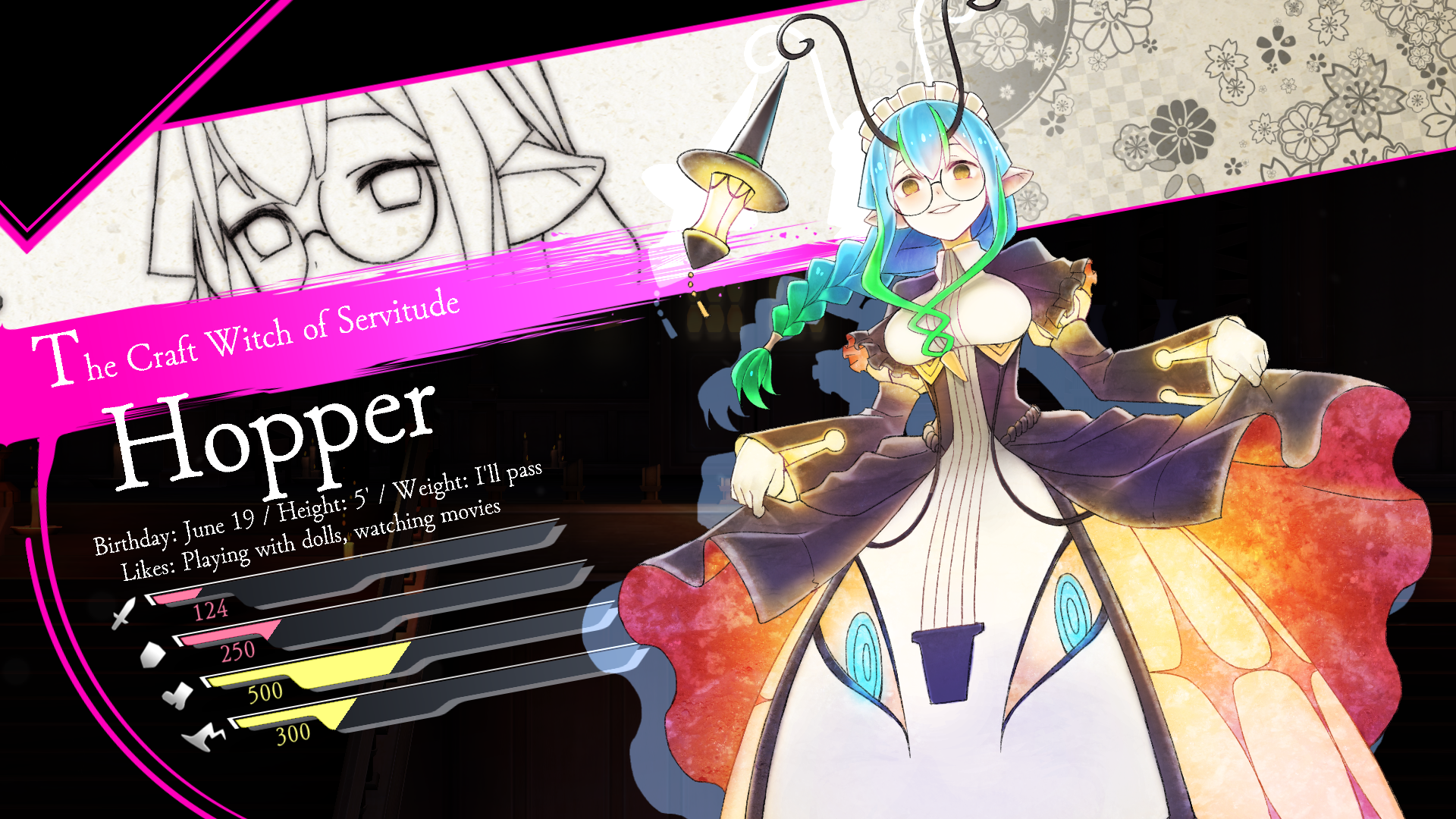 與白羽敵對的魔女祇吏是一群獨特而充滿魅力的少女。她們擁有各自堅持的「偏執」,且會在大畫面動畫的襯托下施展最大限度折磨白羽的攻擊。此外,還能透過在動作關卡中獲得的特殊道具解放支線劇情,若能找到特殊道具就可以深入了解栞吏和同伴們在故事本篇沒有提及的過往。敬請享受以全語音點綴的少女們的故事。