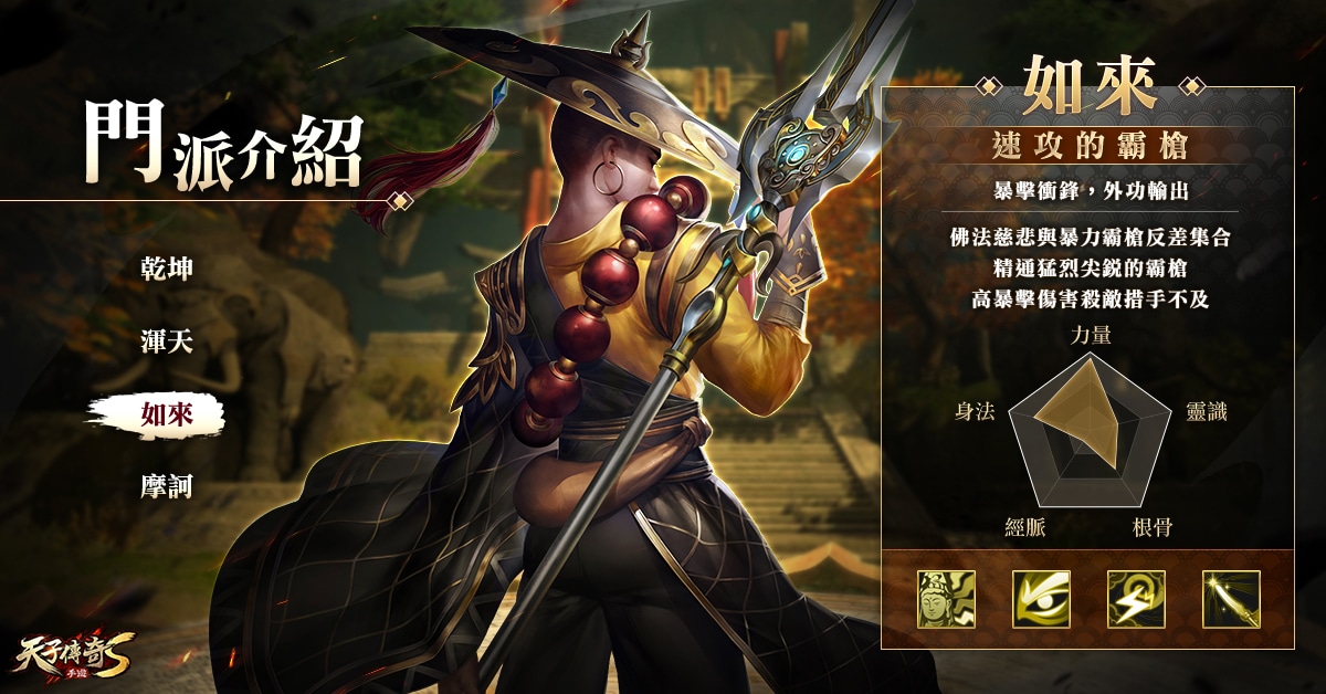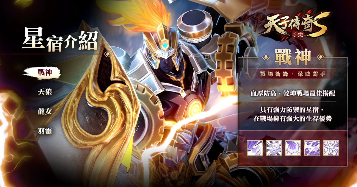 而在星宿方面,則有防禦型「戰神」、外功型「天狼」、內功型「龍女」與輔助型「羽靈」。四大星宿不僅持有著獨一無二的絕學技能,只要在遊戲過程中召喚出星宿共同戰鬥,玩家將同時獲得星宿所帶來的能力加成。隨著星宿的等級逐漸強化,在戰場上釋放的能力特性也將愈加顯著。