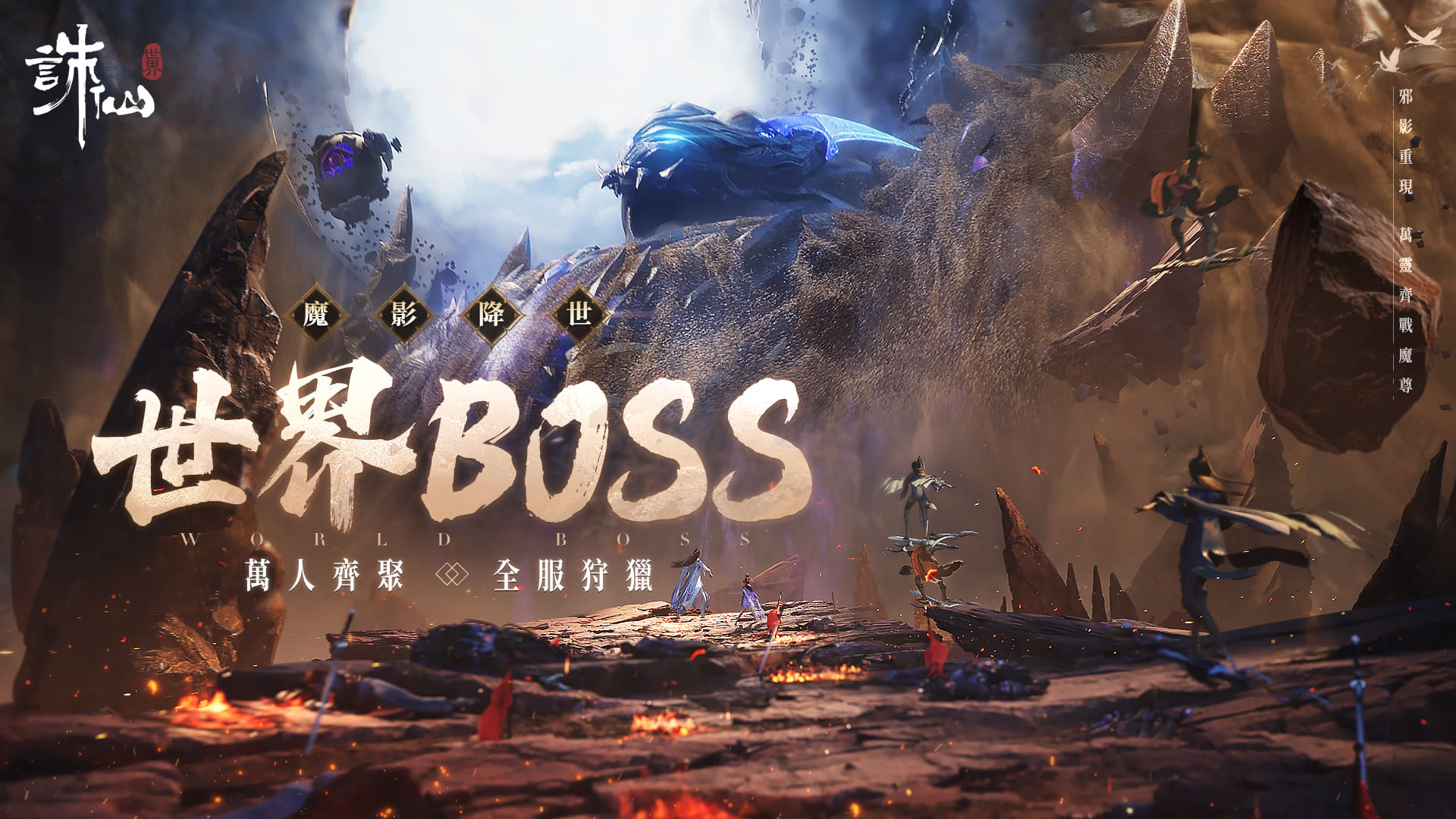 在誅仙大世界中,強敵蠢蠢欲動,極具挑戰性的世界事件將定時開啟,吸引眾多玩家集結出征。玩家可攜手其他隊友,共同挑戰兇悍無比的「飛廉法相」,展開百人同屏的熱血共鬥。玩家只要參與擊殺怪物,即可獲得「飛廉法相禮包」,獲取稀有的強化資源與成長材料,無論是競技戰力或冒險探索,都能助玩家更快登上強者之路