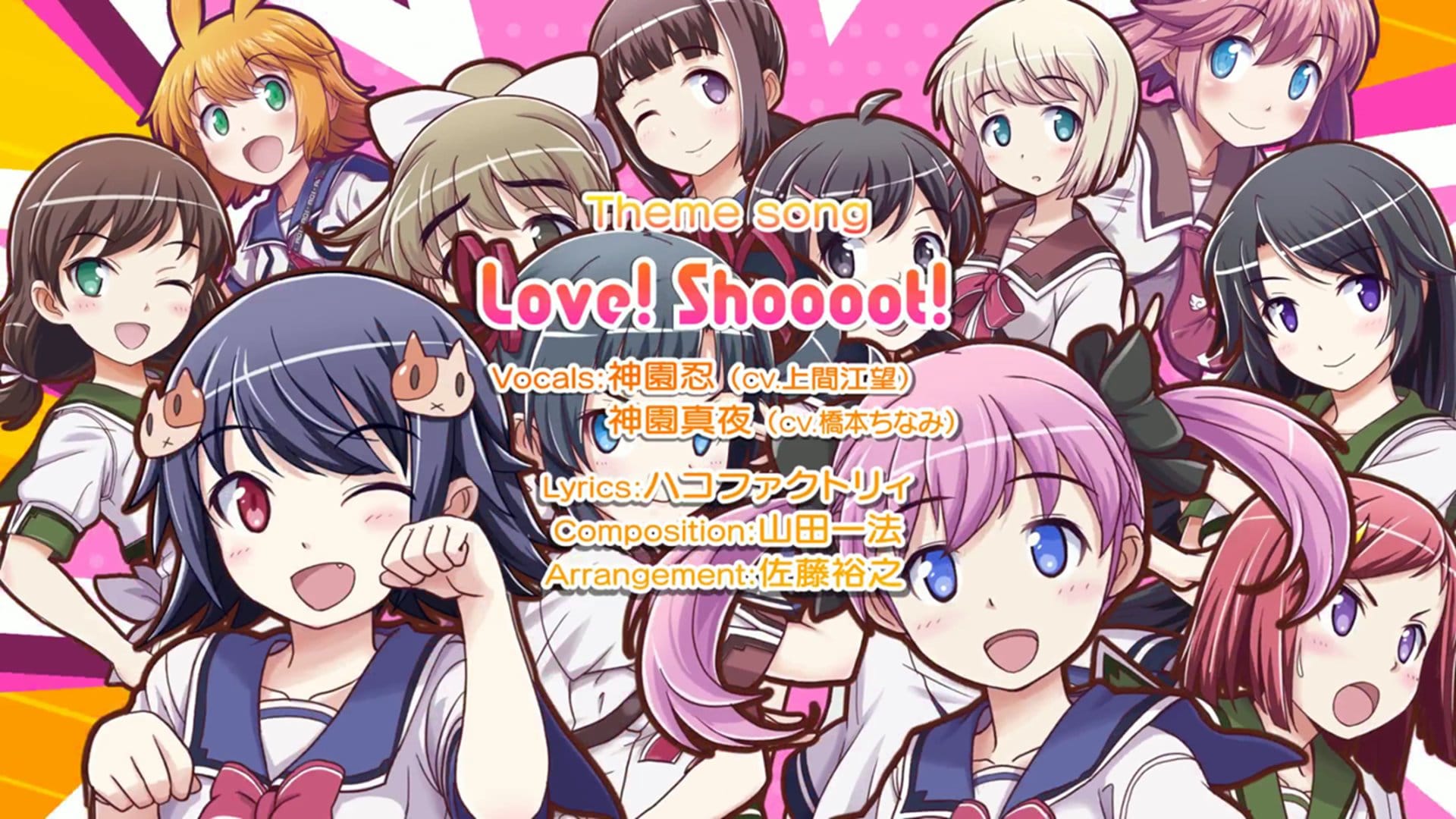 同時公開新開頭動畫,主題曲為本作女主角神園忍(CV. 上間江望)和神園真夜(CV. 橋本ちなみ)姊妹演唱的《愛的 SHOOOOT!》。負責影像製作的是經手了幾乎所有《少女 ☆ 射擊》系列開頭動畫的 yo-yu 和 yokota。與遊戲本篇相同,以詼諧的方式呈現與見習惡魔「庫蘿娜」及魔界生物之間的戰鬥。