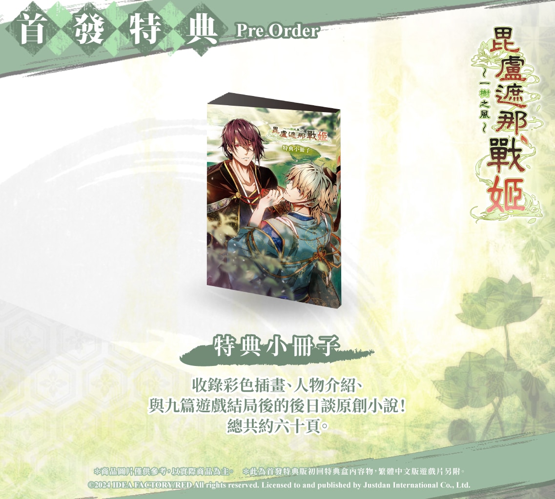 傑仕登宣布,由 Idea Factory 旗下乙女遊戲品牌「Otomate」出品,以源平合戰作為故事舞台背景的戀愛冒險遊戲《毘盧遮那戰姬 源平飛花夢想》,收錄其後日談以及豐富追加劇情的 Fan Disk《毘盧遮那戰姬 一樹之風》確定將於 2024 年春季正式推出亞洲繁體中文版,本次首度公開首發特典版情報。