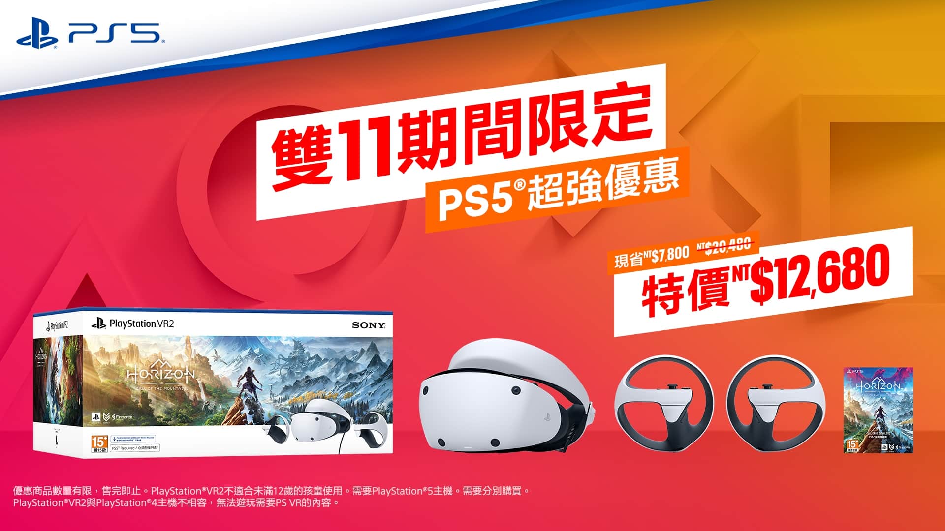 PlayStation VR2 優惠價新台幣 12680 元,折扣 6000 元