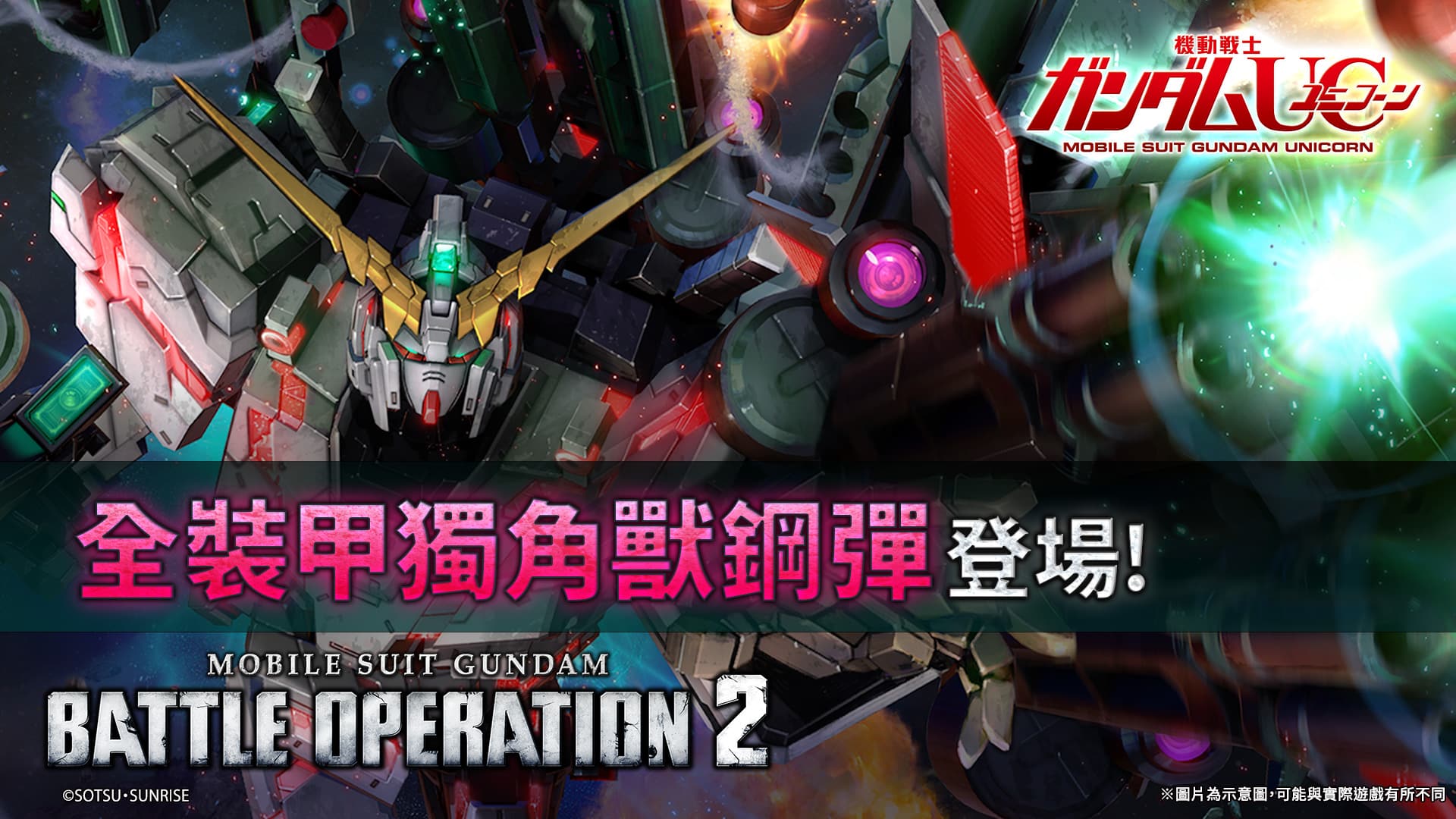 萬代南夢宮娛樂宣布, PlayStation 5、PlayStation 4 專用線上遊戲《機動戰士鋼彈 激戰任務 2》將於 2024 年 7 月 26 日迎來營運第 6 週年。因此於 6 月底實施「6 週年前月祭」。活動期間除了有新機體「全裝甲獨角獸鋼彈」登場以外,還會實施 ★2 以上 MS 保證獲得 1 架的免費抽選配給等活動內容。
