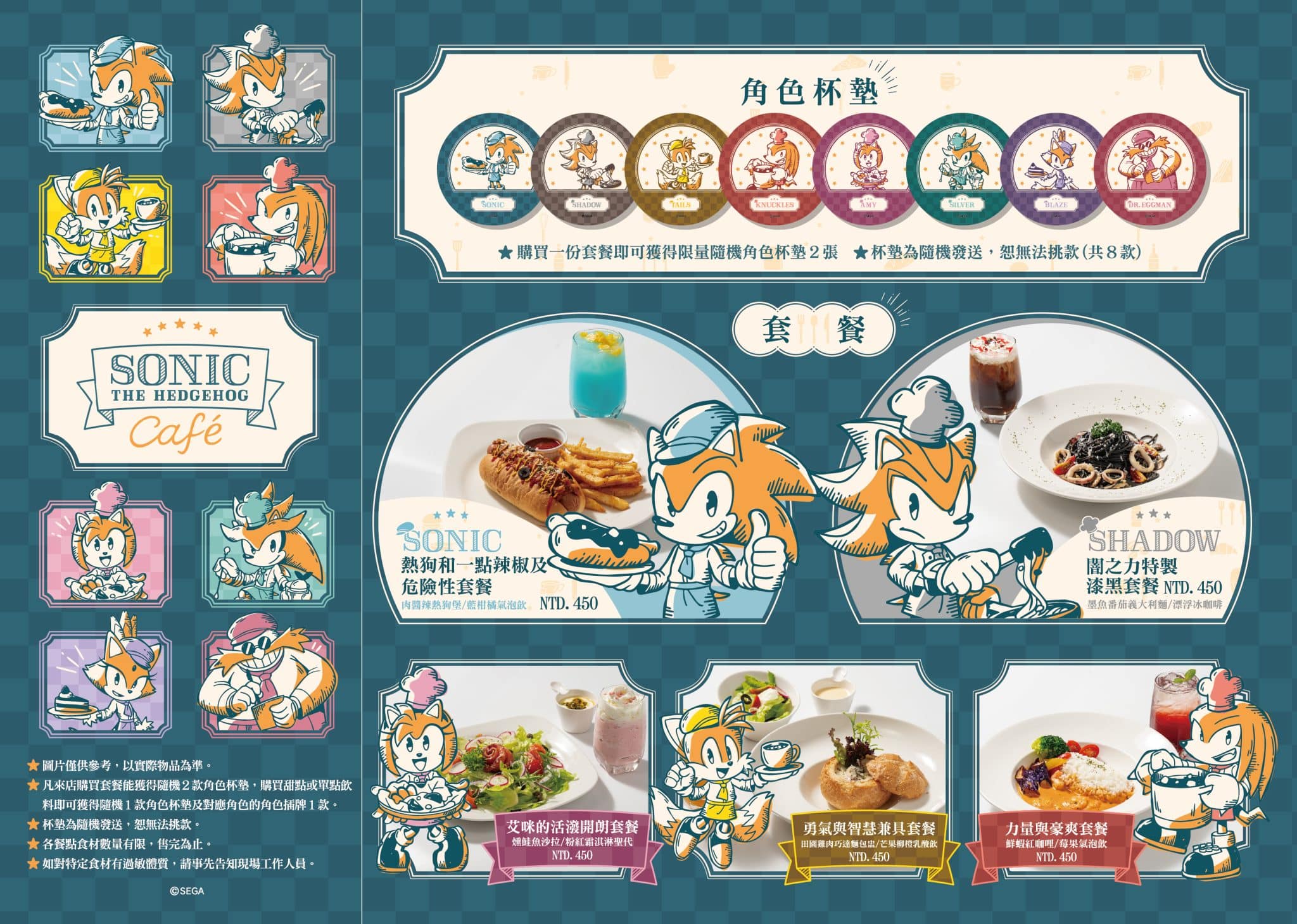 在指定期間內,「SONIC THE HEDGEHOG Café」還將提供《索尼克 × 夏特 世代重啟》的遊戲搶先體驗。本次的主題咖啡廳將會推出各種索尼克相關菜單,現場不僅有美食,還有台灣限定「SONIC THE HEDGEHOG Café」系列索尼克周邊商品。活動期間內,只要來店內消費並打卡,#索尼克同好,就送「SONIC THE HEDGEHOG Café」系列資料夾乙份。
