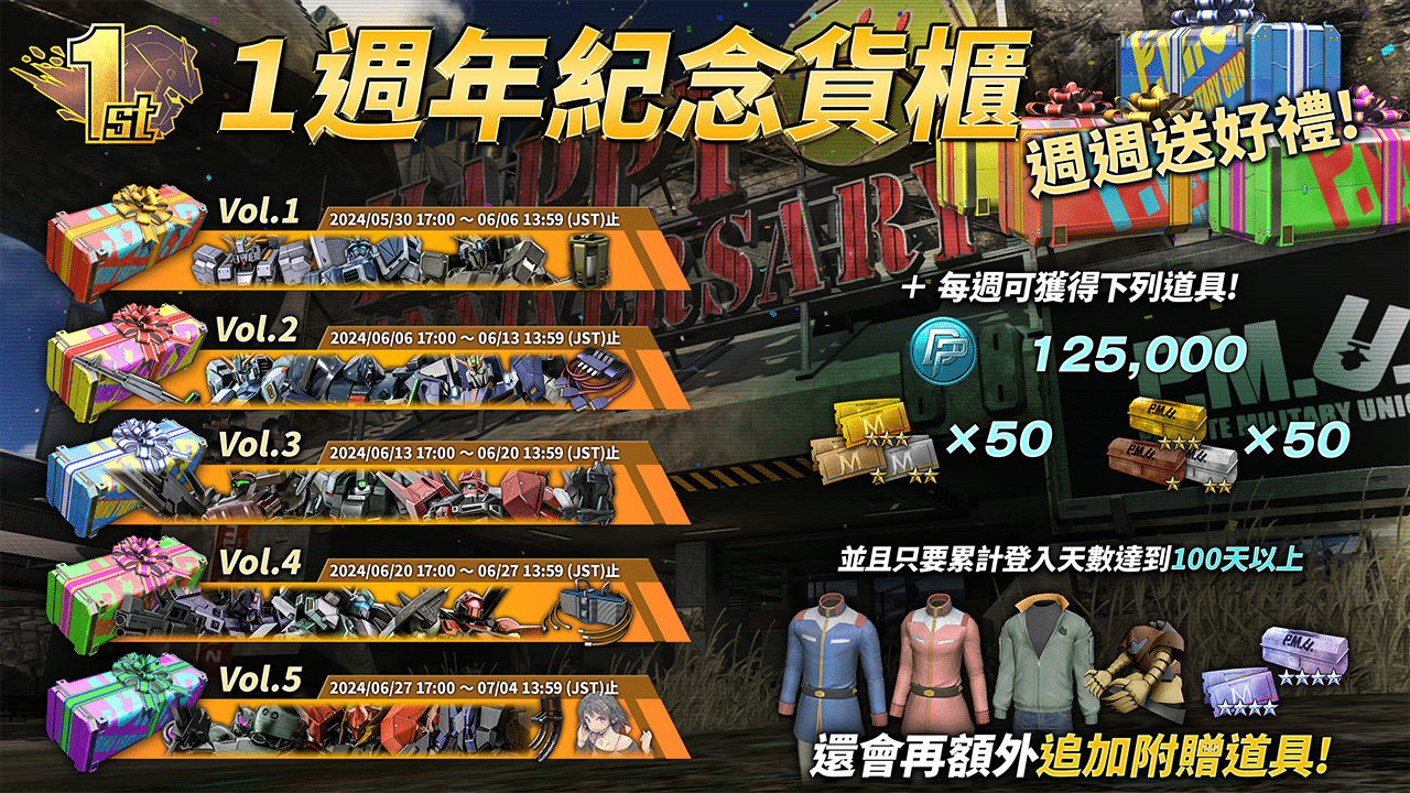 萬代南夢宮娛樂宣布,Steam 專用線上遊戲《機動戰士鋼彈 激戰任務 2》舉辦「1 週年紀念」活動。活動期間除了新機體「ν 鋼彈 [HWS裝備] 」的登場以外,還有從玩家票選前幾名 MS 中隨機獲得 1 架的「抽選配給票選 MS 特殊 STEP UP」 、最多免費 50 連的 10 連抽特殊抽選配給等活動。