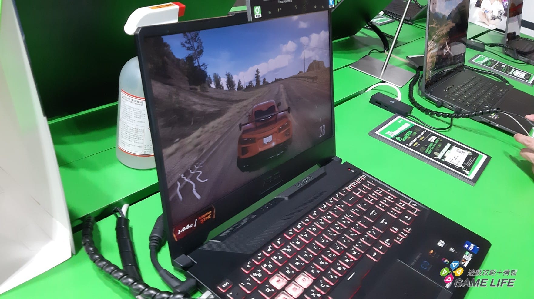 另外兩個區域則分為 PC 區跟家用主機區,家用主機區掛上幾個中等大小的螢幕,展示著 Xbox 的一些主力跟發售後就登上 Xbox Game Pass 的知名作品,例如《魔物獵人 崛起》等。相較於家用主機區,PC 區就展示了較多作品,用許多筆記型電腦一一排開,讓玩家能現場體驗各種遊戲。