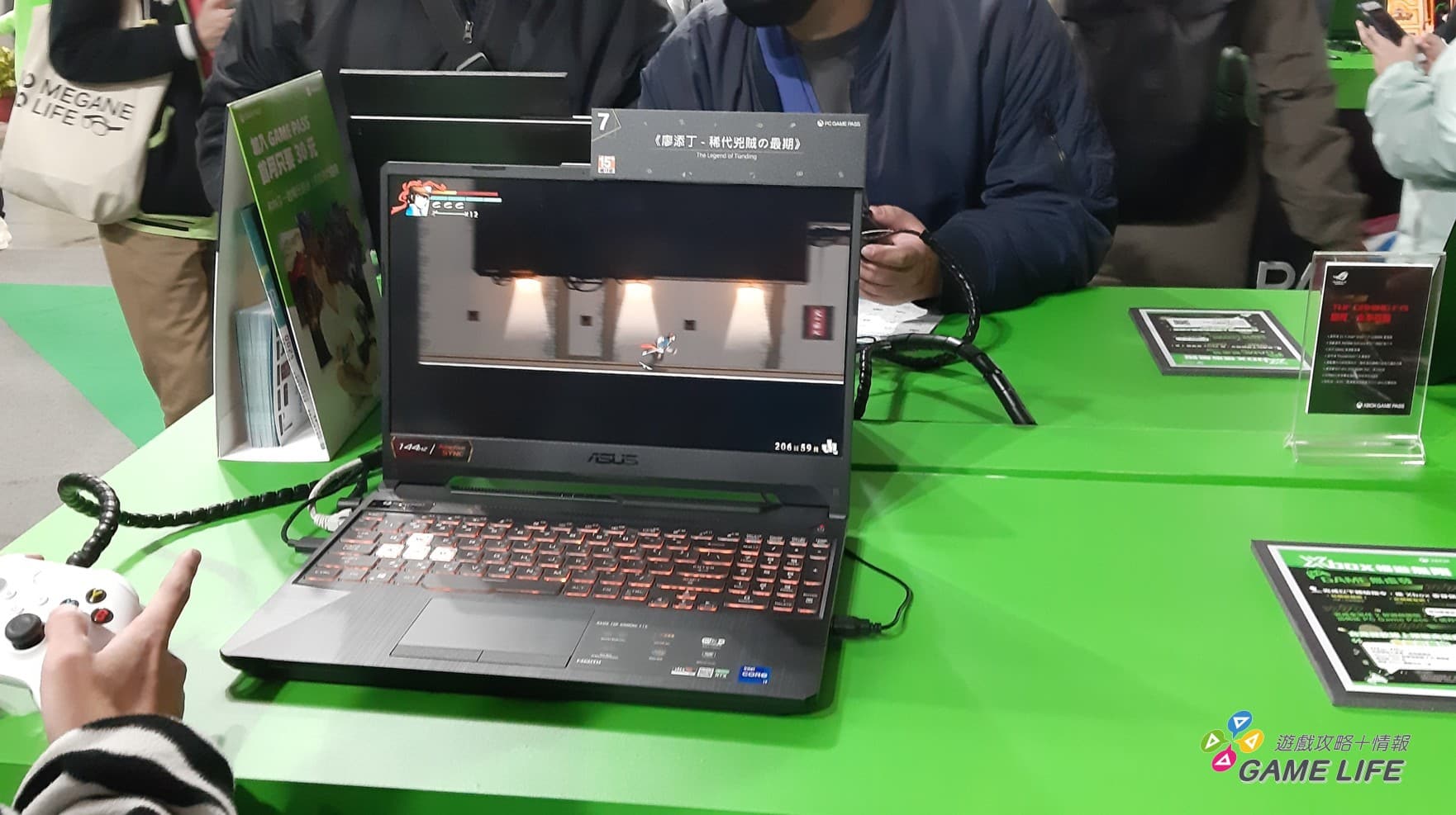 Xbox 攤位現場也不忘記宣傳各種 Game Pass 相關的優惠活動,玩家能夠現場考慮並且詢問工作人員進行購買前的參考。攤位人員也預告了《臥龍:蒼天隕落》,還有首次在台灣釋出試玩的魂系動作 RPG 遊戲《P 的謊言》,兩款遊戲皆會在上市當日同步登陸 Xbox Game Pass,作為吸引玩家參加 Game Pass 的一個誘因。