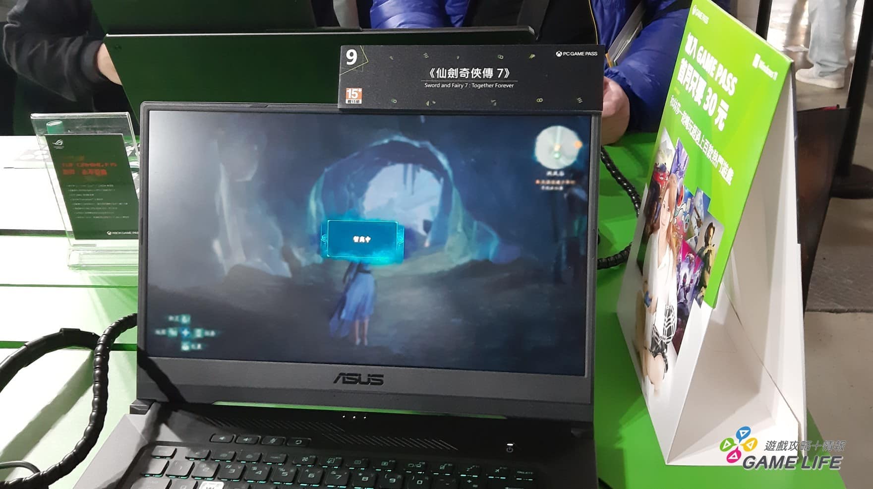 Xbox 攤位現場也不忘記宣傳各種 Game Pass 相關的優惠活動,玩家能夠現場考慮並且詢問工作人員進行購買前的參考。攤位人員也預告了《臥龍:蒼天隕落》,還有首次在台灣釋出試玩的魂系動作 RPG 遊戲《P 的謊言》,兩款遊戲皆會在上市當日同步登陸 Xbox Game Pass,作為吸引玩家參加 Game Pass 的一個誘因。