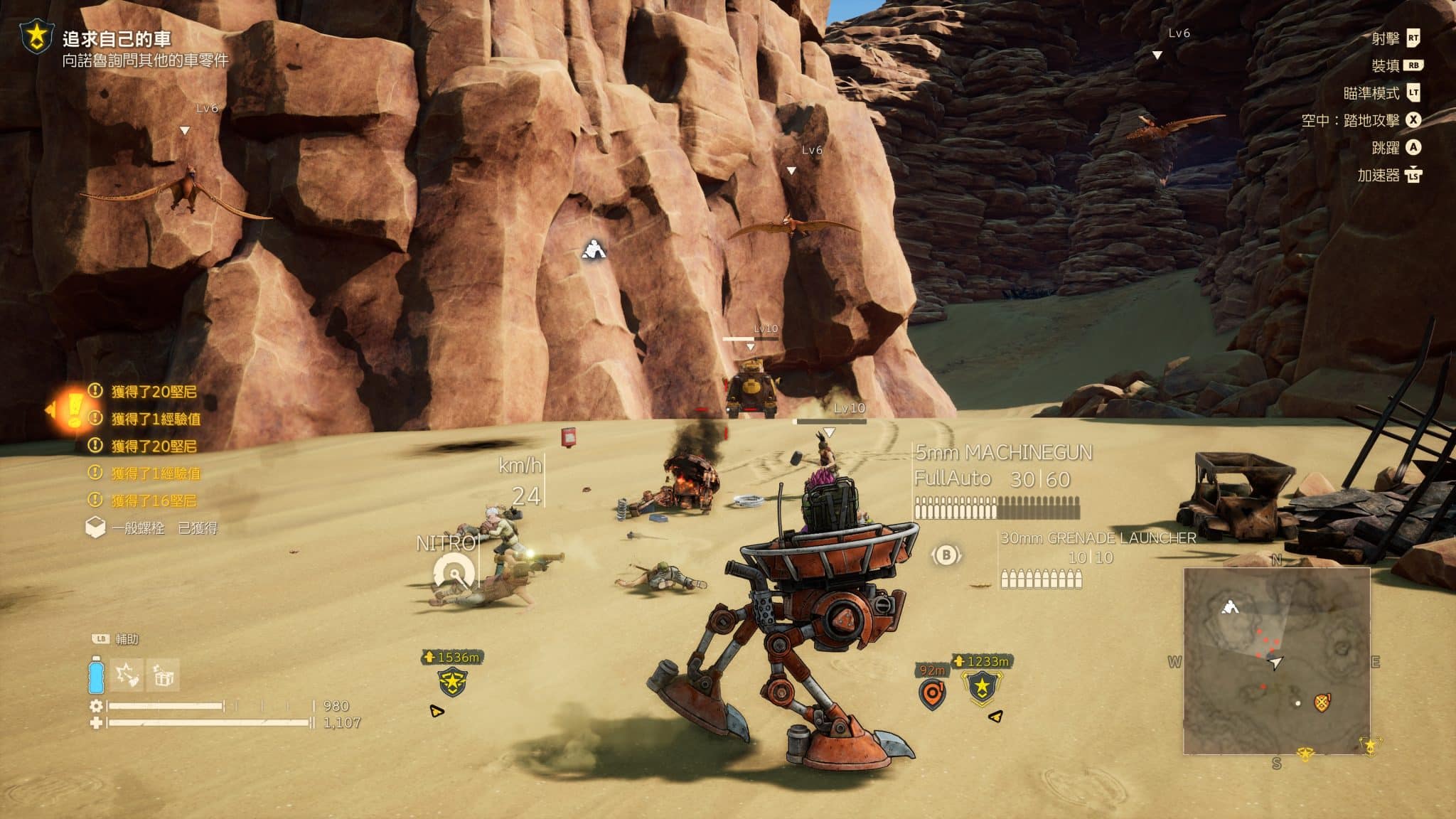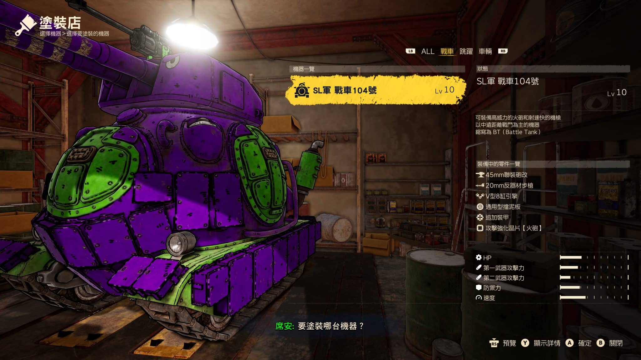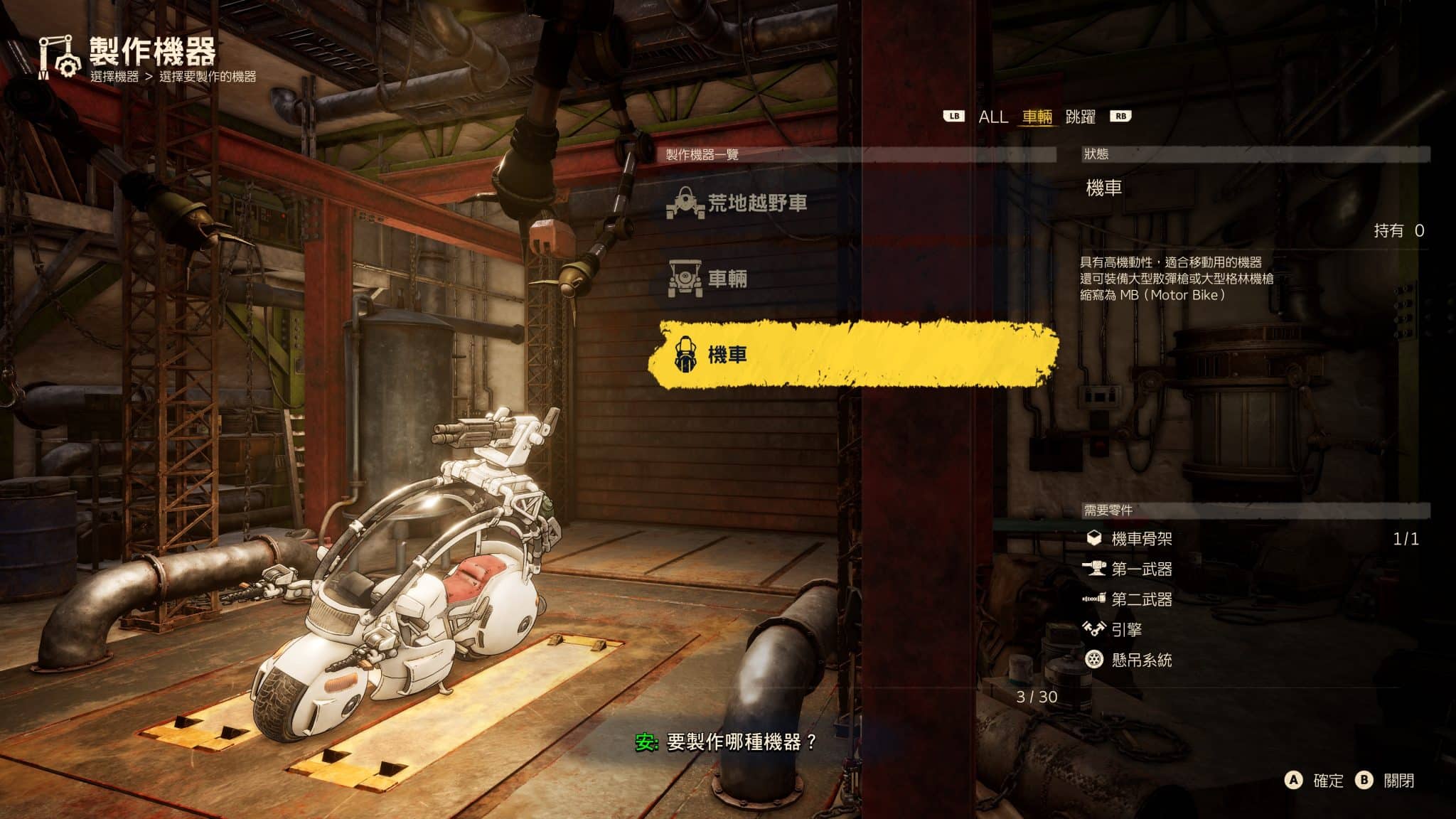 獲得載具的方式,遊戲還搞得非常有儀式感。我們需要取得載具框架,在機庫打造武器、引擎跟懸吊系統,才能拼出一台。最後還可以命名跟上色。載具可以透過機庫升級強化各方面素質,探索時也能發現設計圖,打造新配備。擊敗敵方載具也有機會獲得部件。