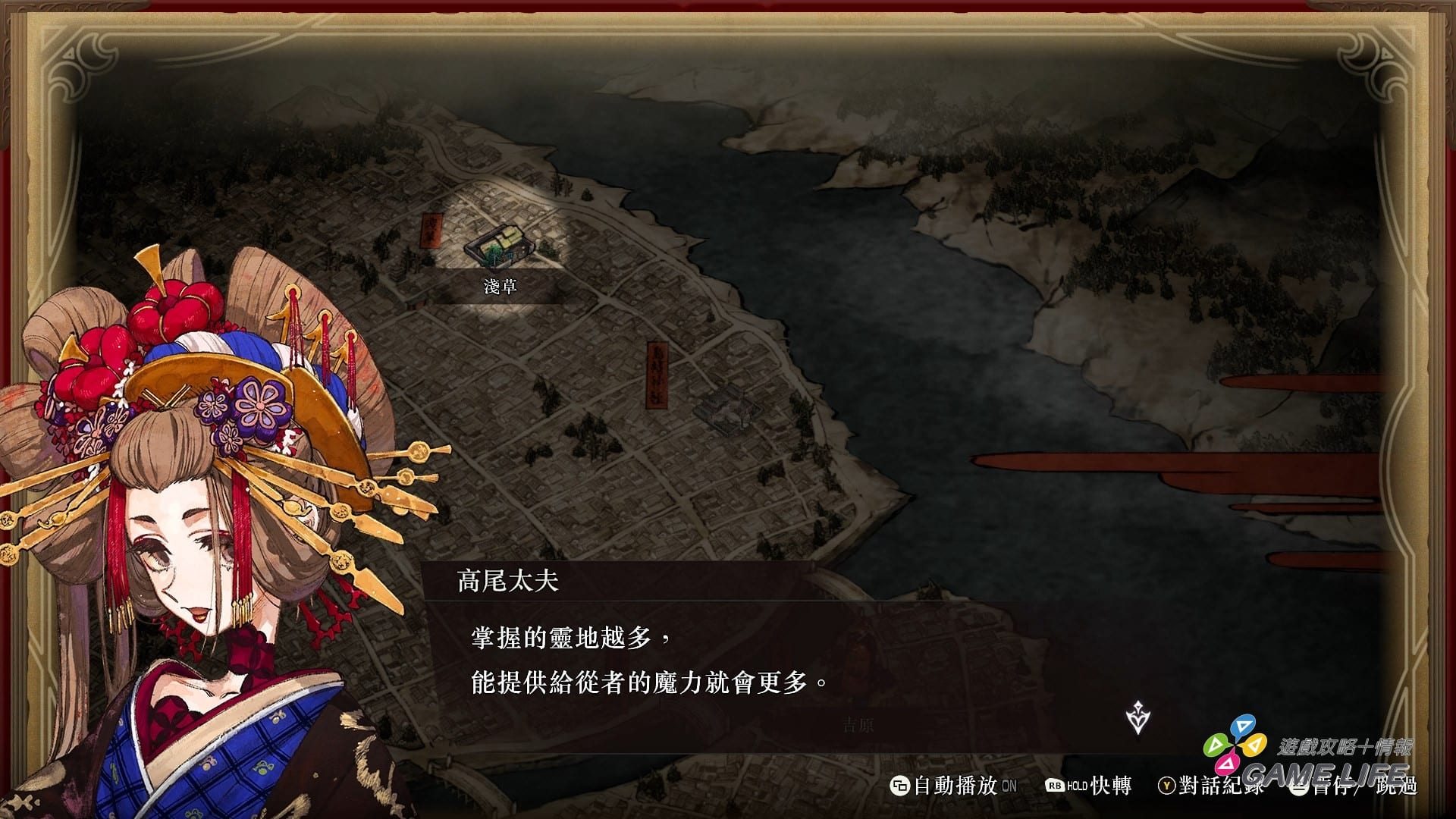 遊戲進展方式算是提供給玩家一定程度的自由,在據點告訴玩家欲前往的目的地,前往該處觸發劇情跟戰鬥,而在前往引發劇情的地點前,會安排機會讓玩家在江戶地圖上移動,玩家可以趁這時候四處逛逛,打打無關主線的敵人賺點金錢或經驗值、前往商家買回復道具跟素材,或是處理支線劇情。