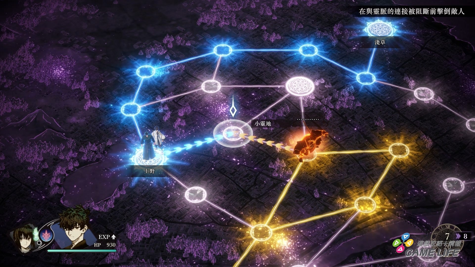 會說「一定程度」是因為有時一離開據點就要開始跟敵人搶「地脈」,這個部份就是帶入了《FGO》偶爾會舉辦的「聖杯戰線」活動的系統。將玩家所在地跟目的地以線跟點連成一個戰略地圖,之後以敵我輪流移動的方式,在有限的移動次數下搶奪地盤,在保住自己據點的前提下奪取敵人的本據地。