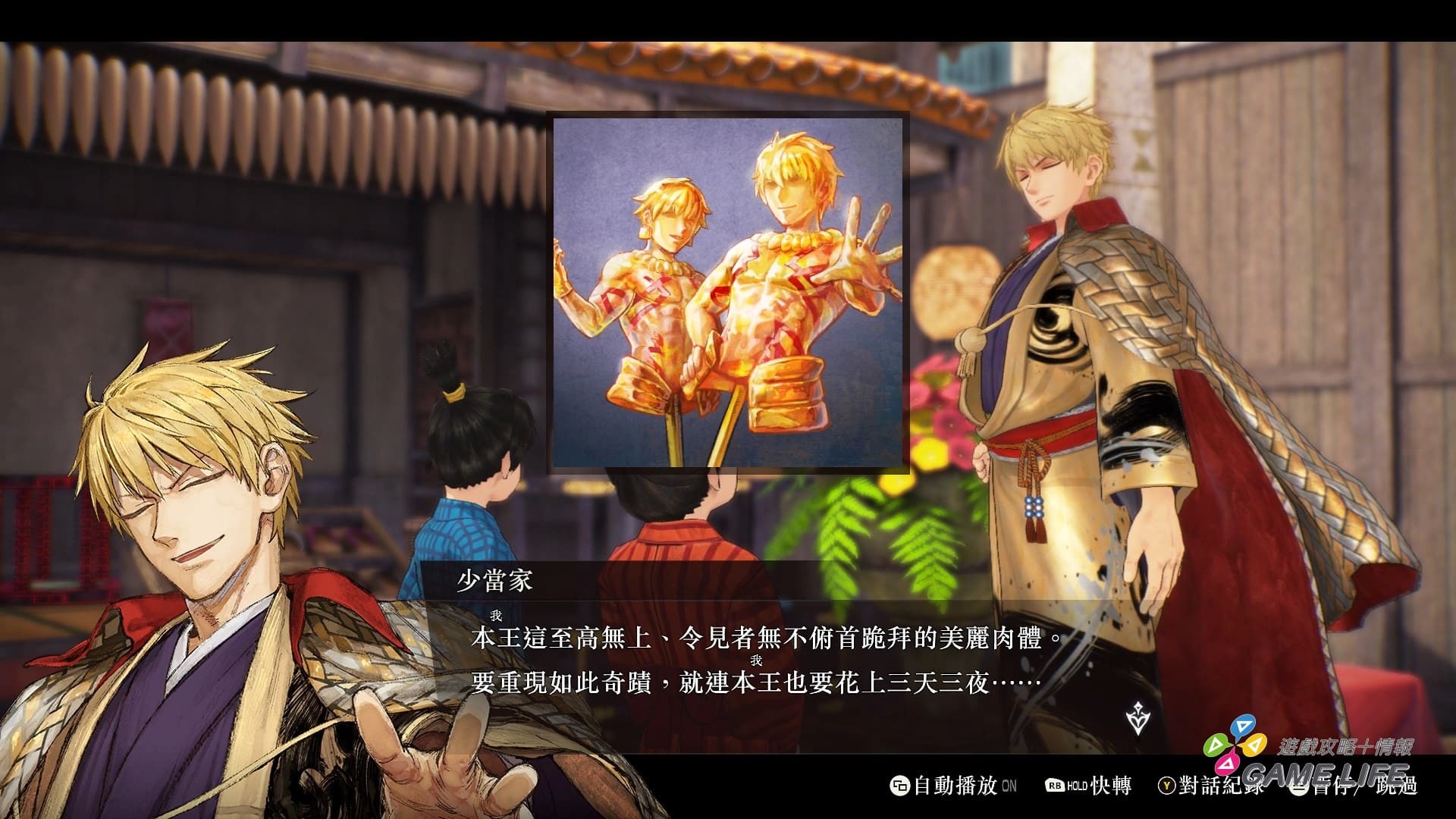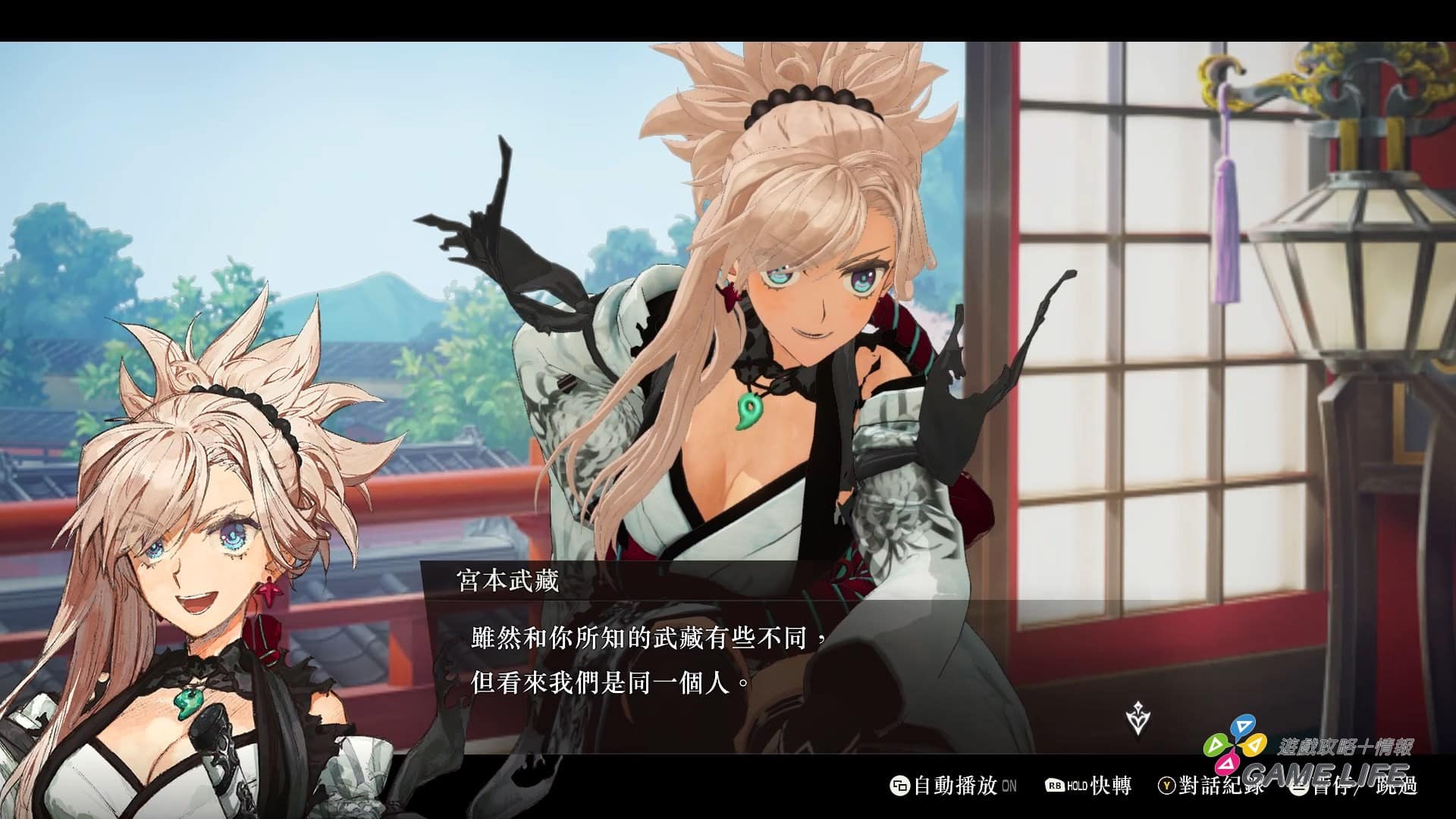 講完戰鬥系統,再來就是這遊戲的演出表現了。雖然基本推進劇情的方式是 3D 模組簡單動作演出加 2D 立繪加對話框的全語音演出,重要場面會穿插設定好的 3D 動畫演出,算標準套路。但配合江戶時代背景,除了一些不得已的專有名詞外,許多表現方式都改成日本古風來呈現,甚至還加入了一些讓玩過《FGO》的玩家相當有印象的音樂跟演出,這點筆者認為是能給予好評價的。