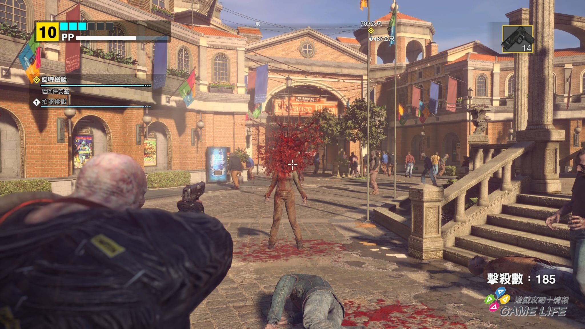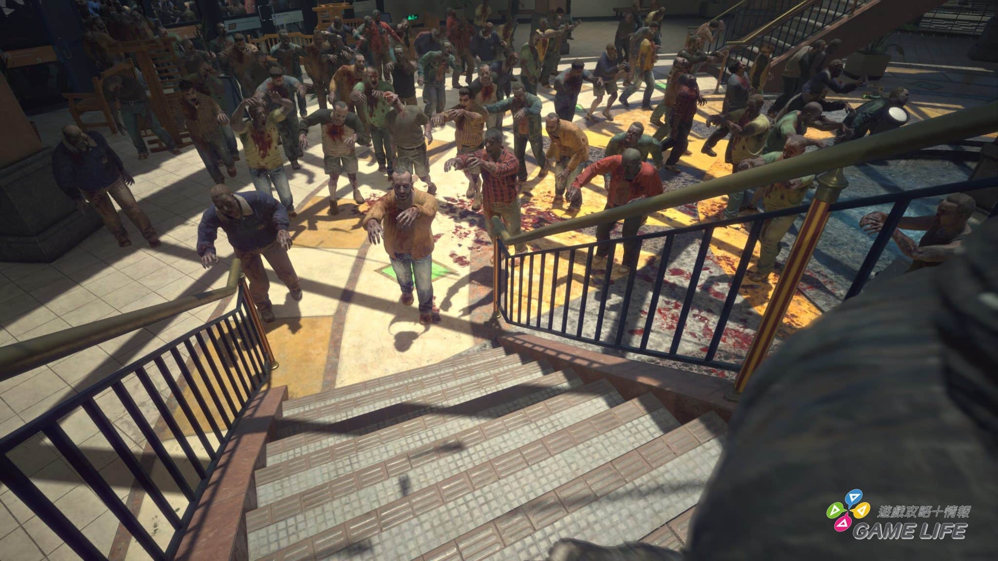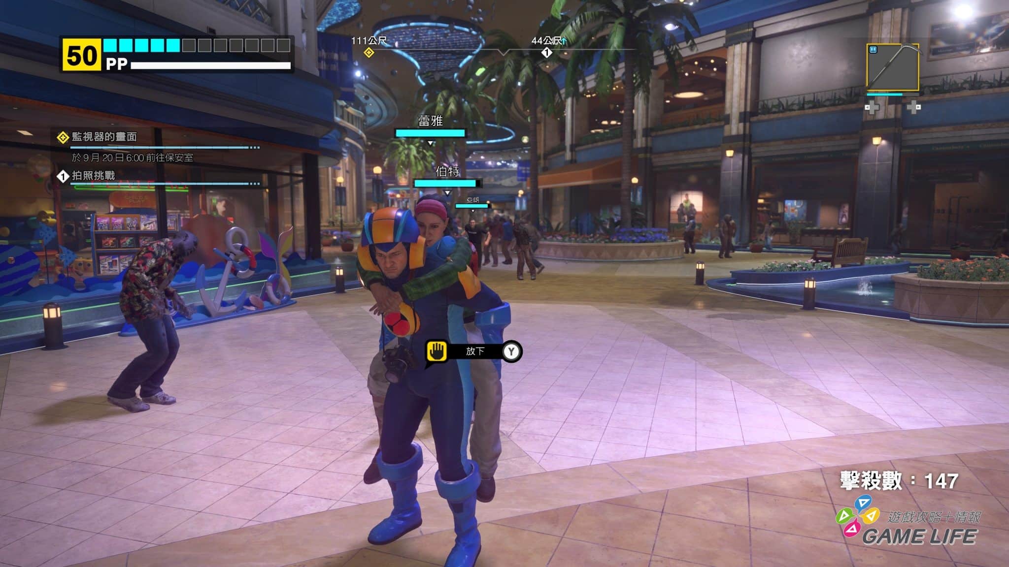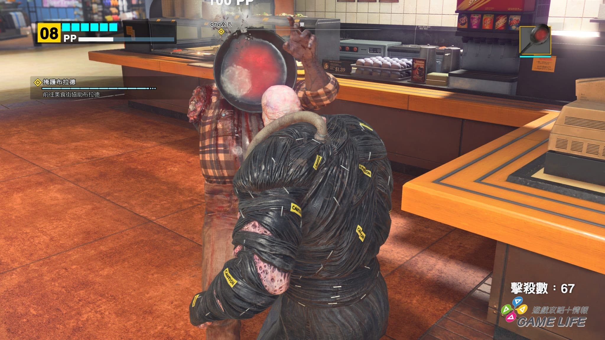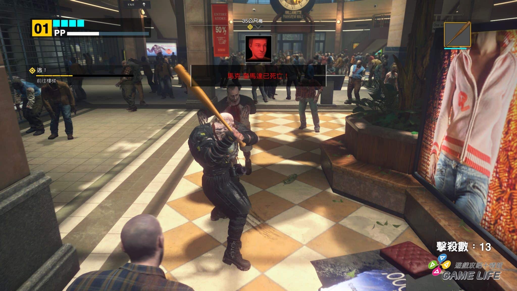 遊戲的樂趣便是與商場設施的各種互動。運動用品店的棒球棍只是殺殭屍的入門基本款,健身房的啞鈴,餐廳的平底鍋,槍店的霰彈槍。只要這間店裡的東西能打死殭屍,那這間店就是武器店。